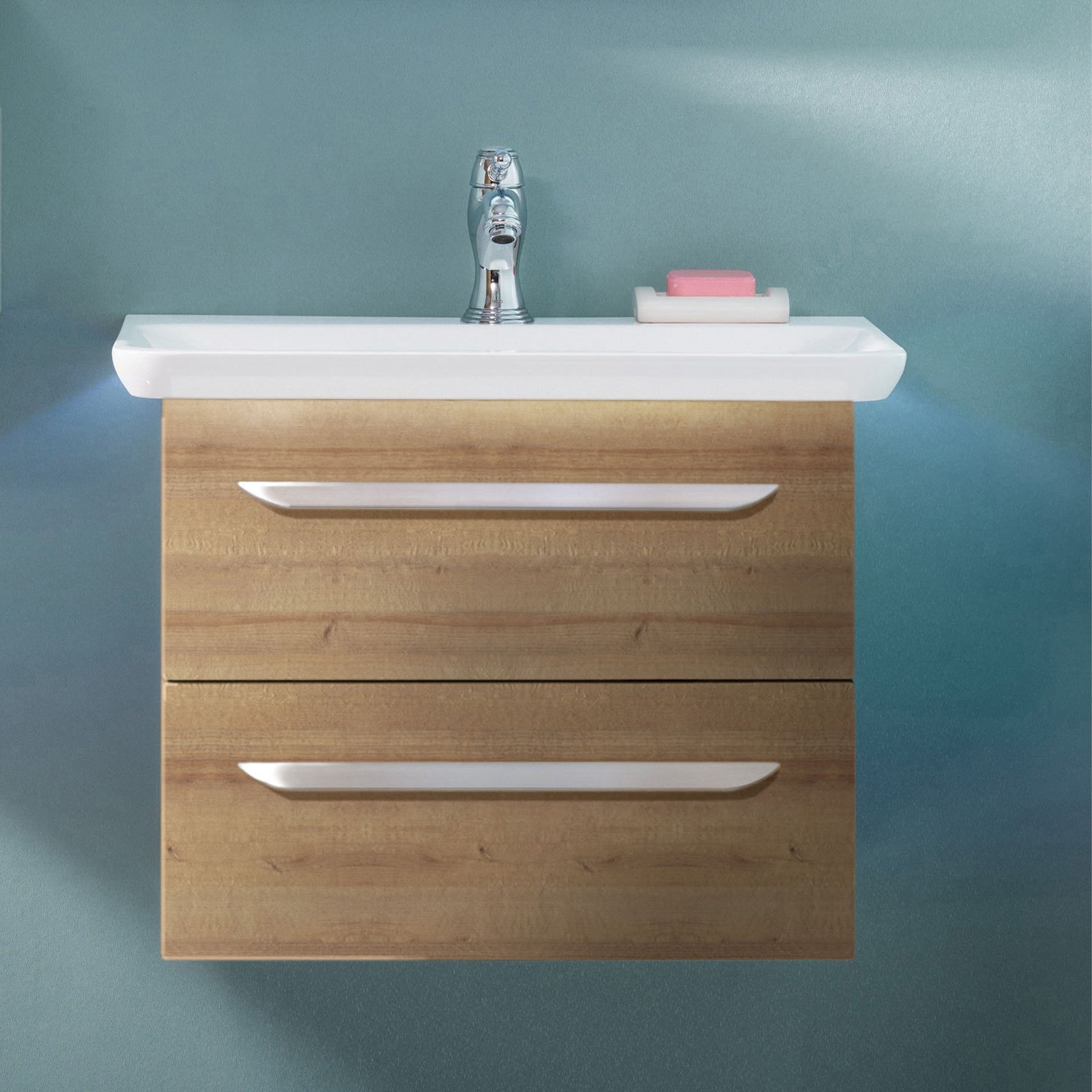 Der in hellbraun gehaltene Waschtischunterschrank von Lanzet M9 verleiht Deinem Badezimmer ein edles Aussehen. Der Unterschrank ist im Design zeitlos und formschön gestaltet. Mit seiner geringen Breite von 59,5 cm ist er besonders für kleine Bäder und Gäste-WCs geeignet. Zwei ausziehbare Schubladen mit Einzugsdämpfung ermöglichen eine praktische Verstauung der Handtücher oder sonstiger Badutensilien.