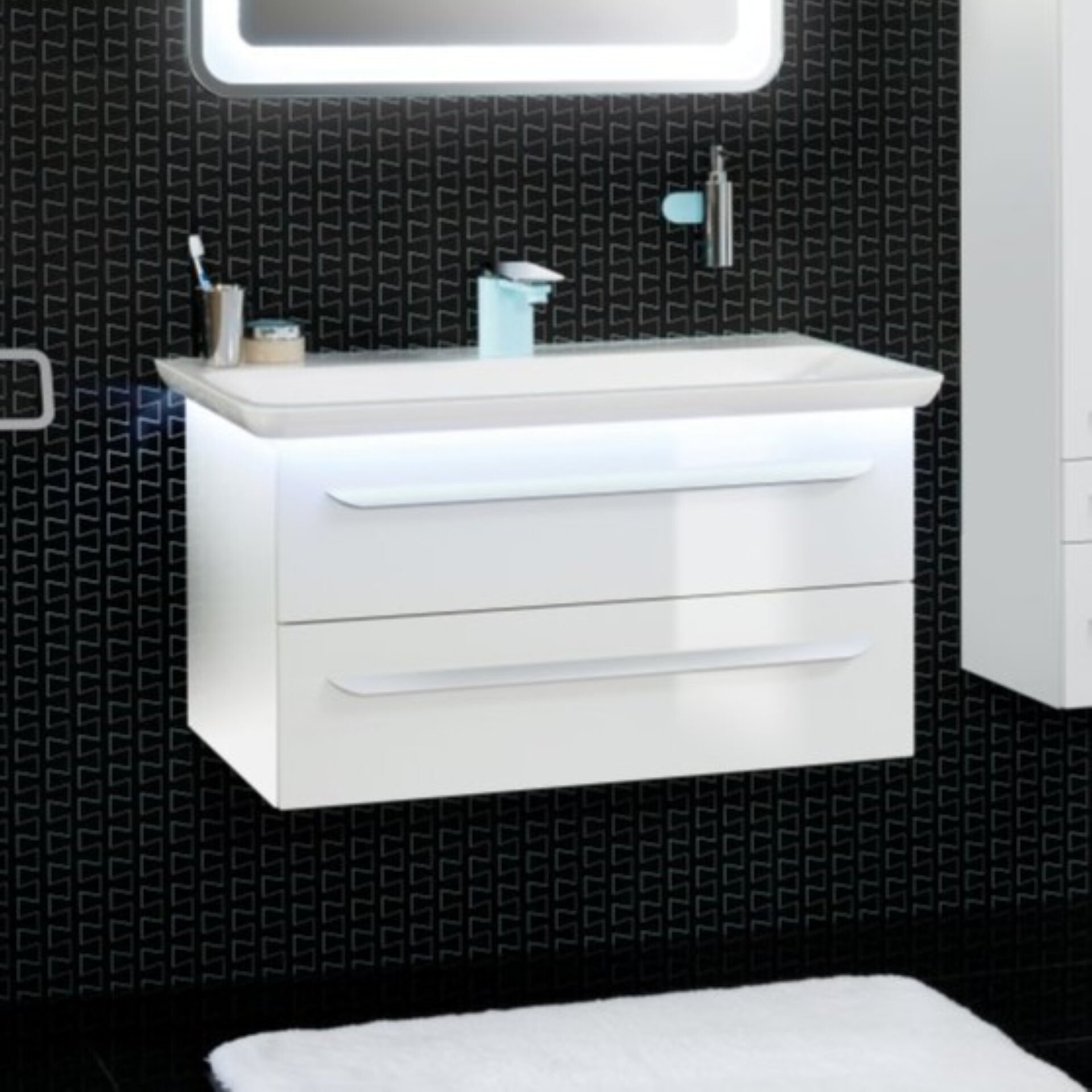 Der in Weiß Glanz gehaltene Waschtischunterschrank von Lanzet M9 verleiht Deinem Badezimmer ein edles Aussehen. Der Unterschrank ist im Design zeitlos und formschön gestaltet. Mit seiner Breite von 90 cm bietet er genügend Stauraum. Zwei ausziehbare Schubladen mit Einzugsdämpfung ermöglichen eine praktische Verstauung der Handtücher oder sonstiger Badutensilien.