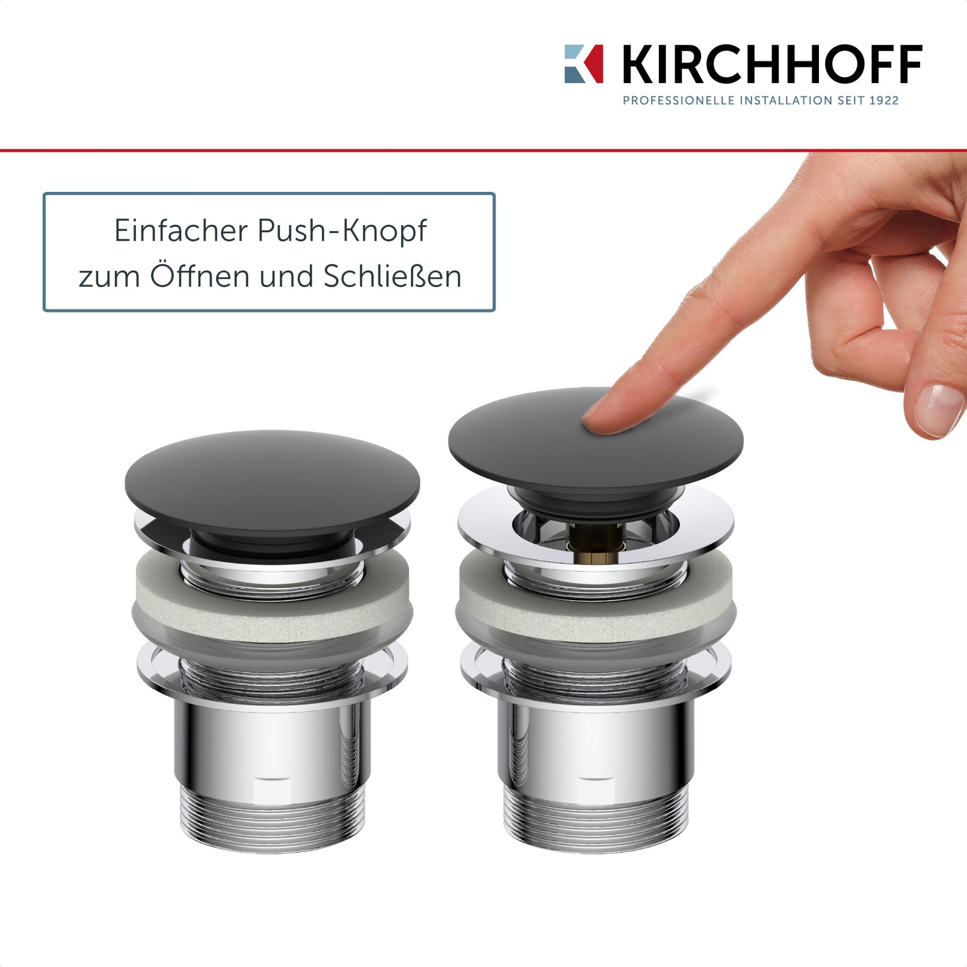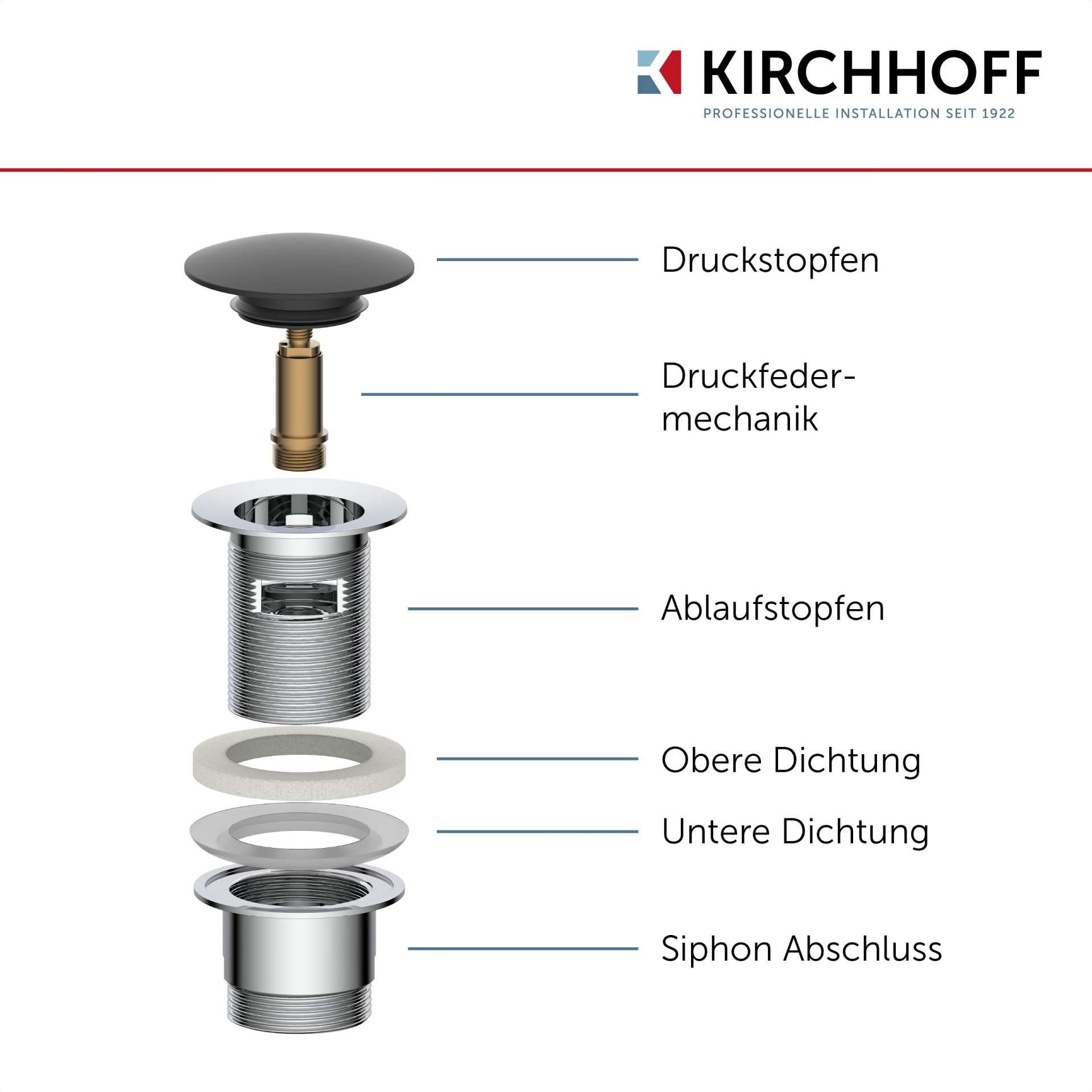 - Metall Ablaufgarnitur mit einer hochwertigen Druckfeder aus Messing