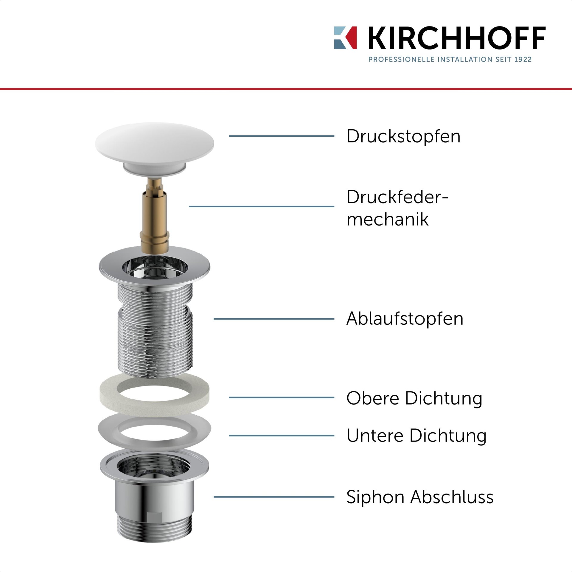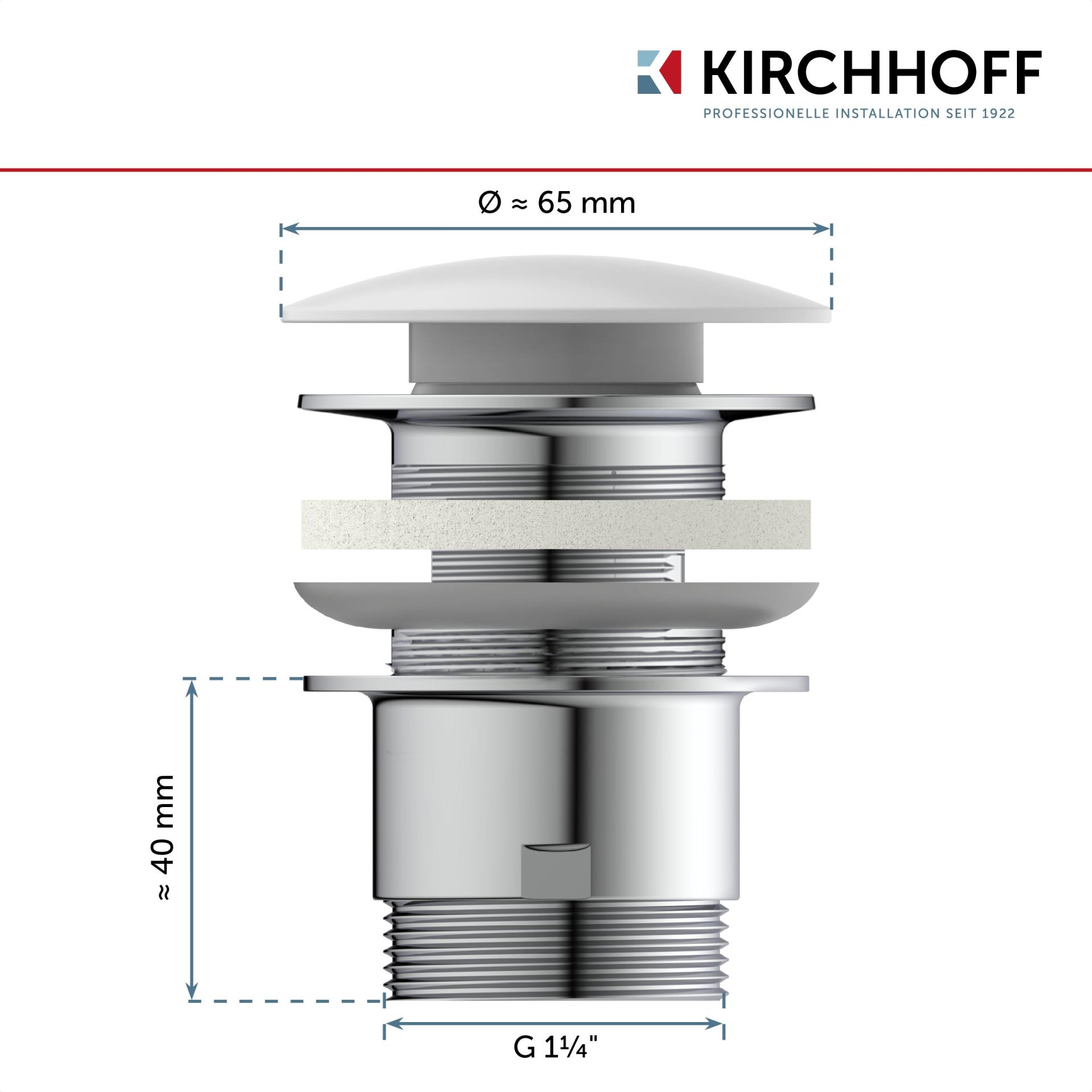 Kirchhoff Ablaufventil Weiß, mit Überlauf, 1 1/4" x 65 mm