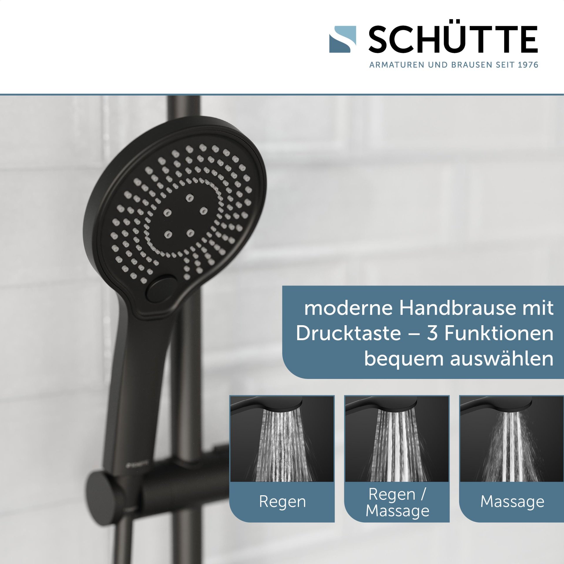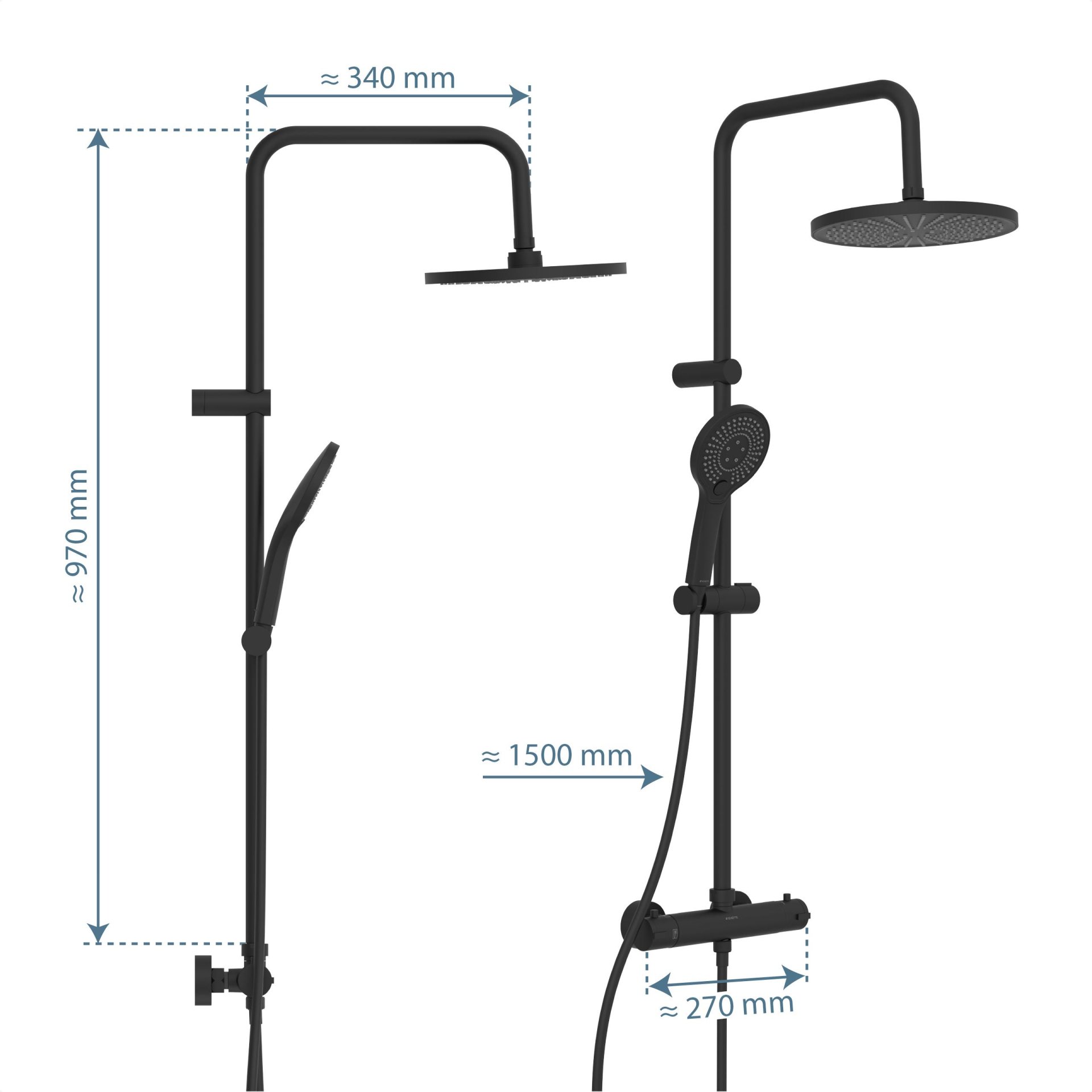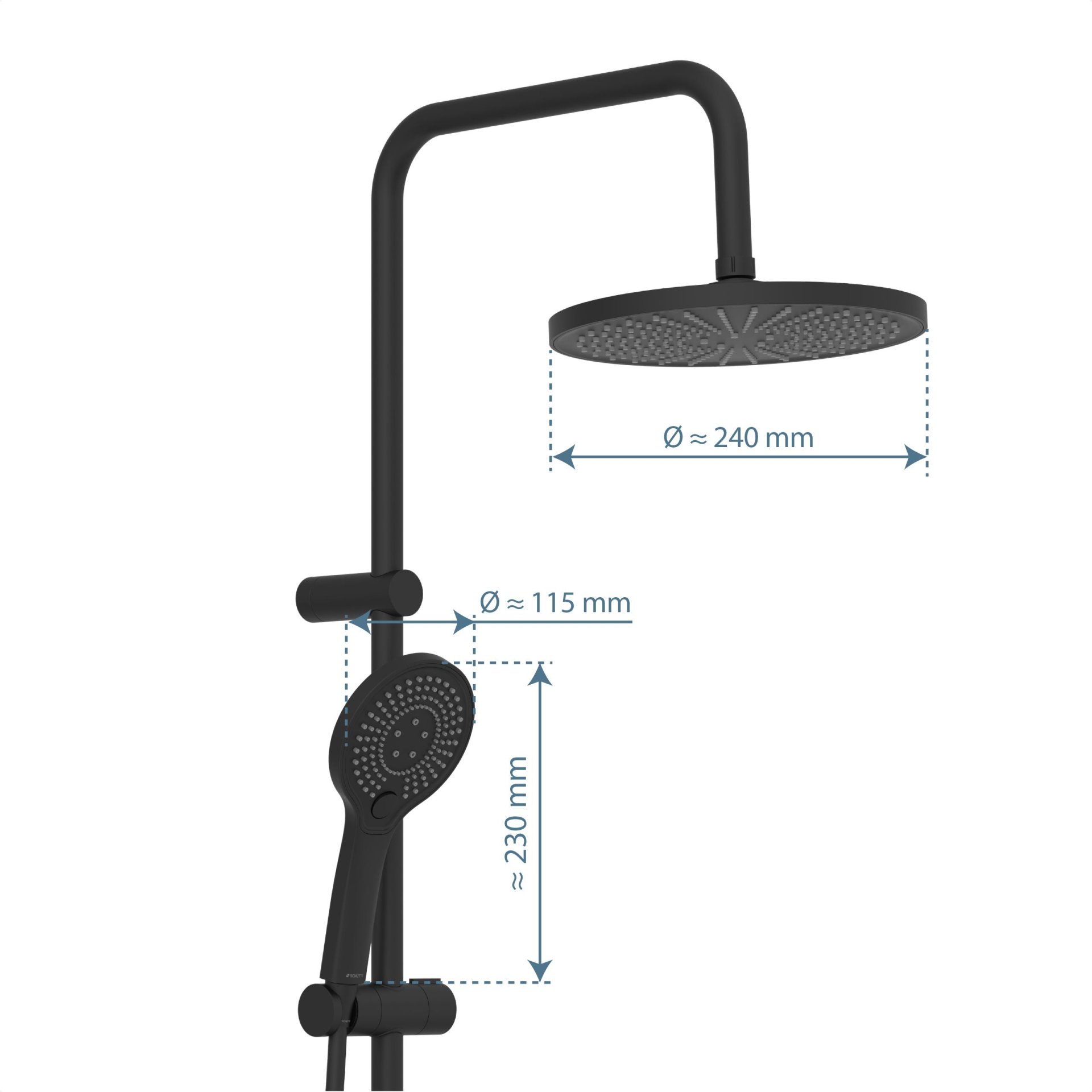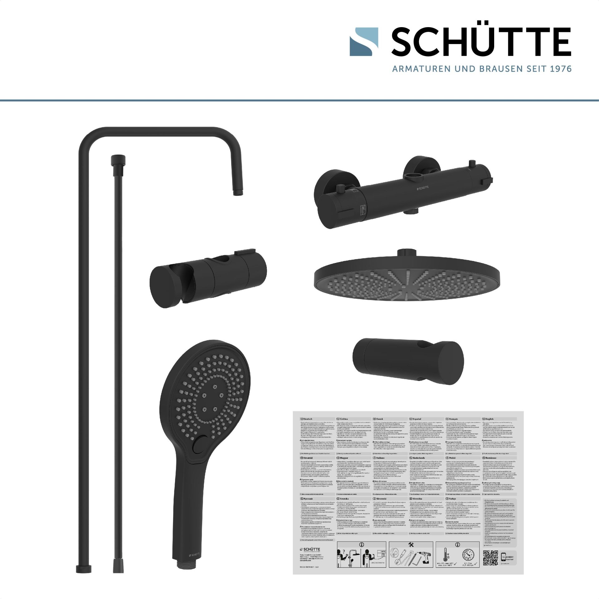 Schütte ADRIA Überkopf-Brauseset Schwarz matt, mit Duschthermostat
