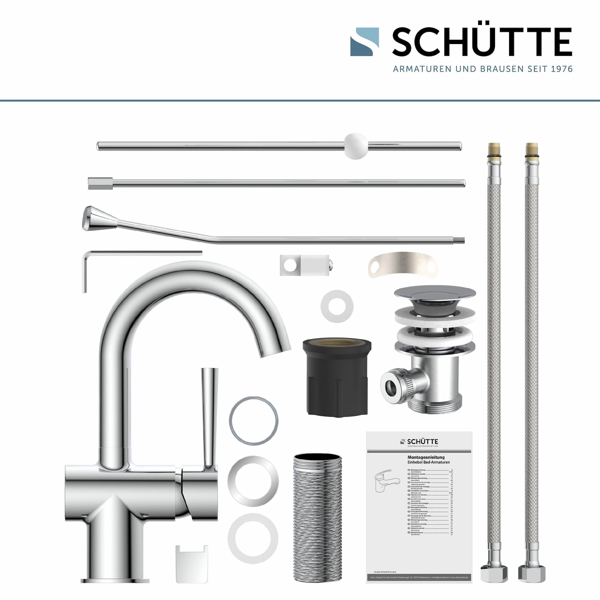 - Der Wasserhahn Bad verfügt über eine Waschbecken Ablaufgarnitur mit Zugstange (Stangen-Exzenter) zum Öffnen und Schließen des Abfluss Stöpsels. Passend zu allen Waschtisch-Siphons mit 11/4“ - Ø ca. 4 cm Anschluss.