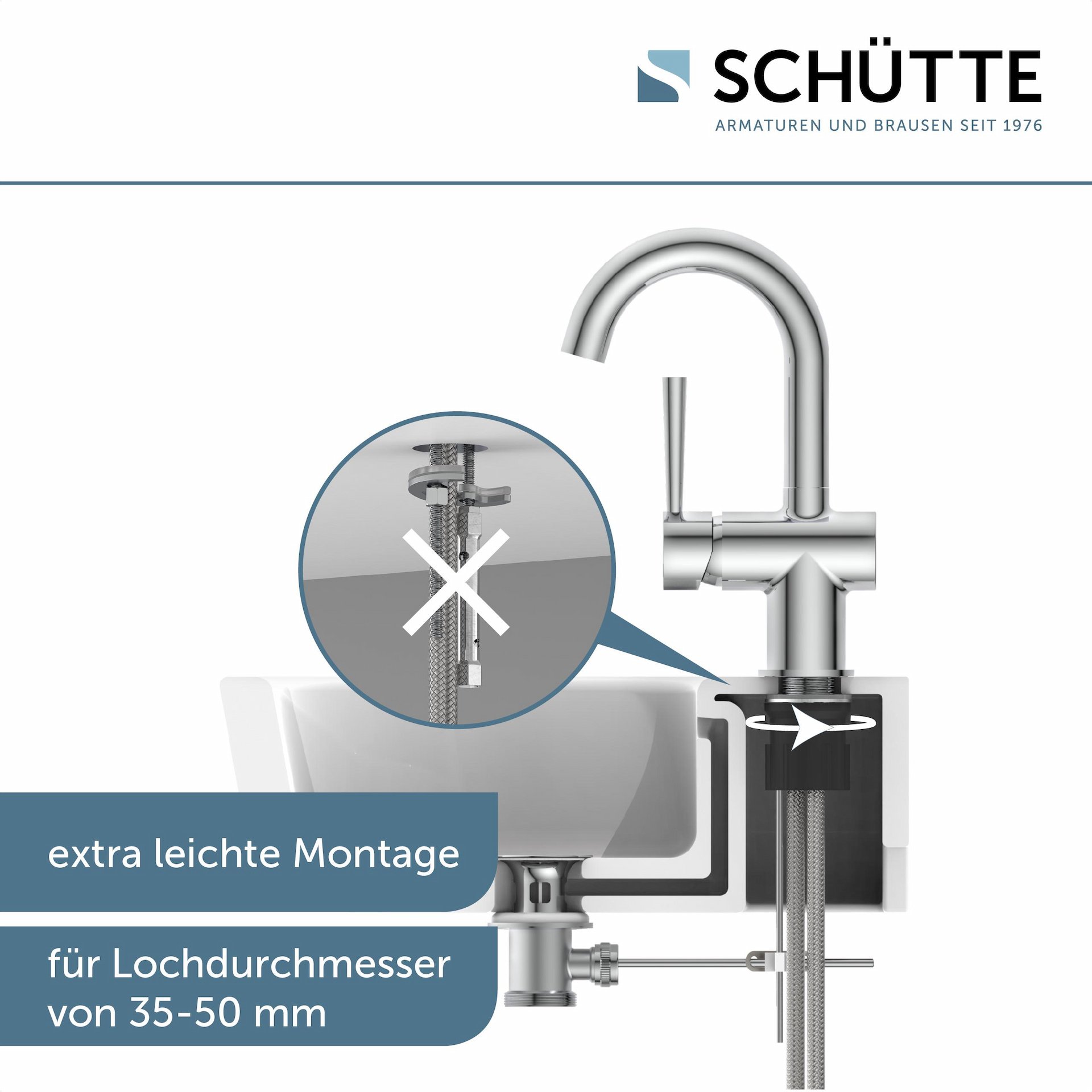 - Abgerundet wird die Badarmatur durch ihre einfache Montage. Die mitgelieferte Zentralverschraubung ist praktisch, selbsterklärend und kann ohne Fachkenntnisse schnell umgesetzt werden.