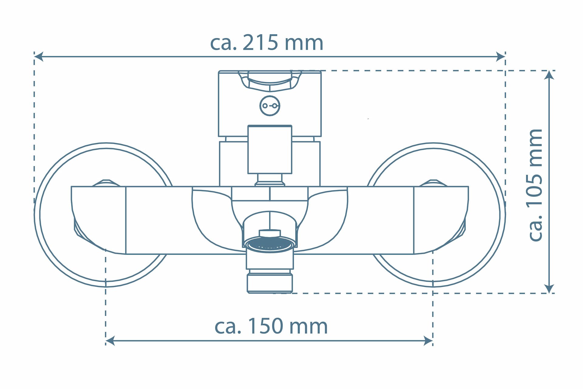 - Ausladung: Die Länge, die der Auslauf von der Mitte des Armaturenkörpers in das Becken hineinragt beträgt 150 mm.