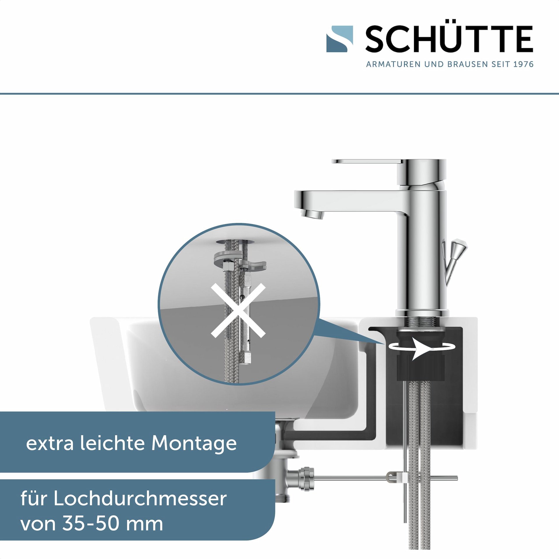 - Abgerundet wird die Badarmatur durch ihre einfache Montage. Die mitgelieferte Zentralverschraubung ist praktisch, selbsterklärend und kann ohne Fachkenntnisse schnell umgesetzt werden.