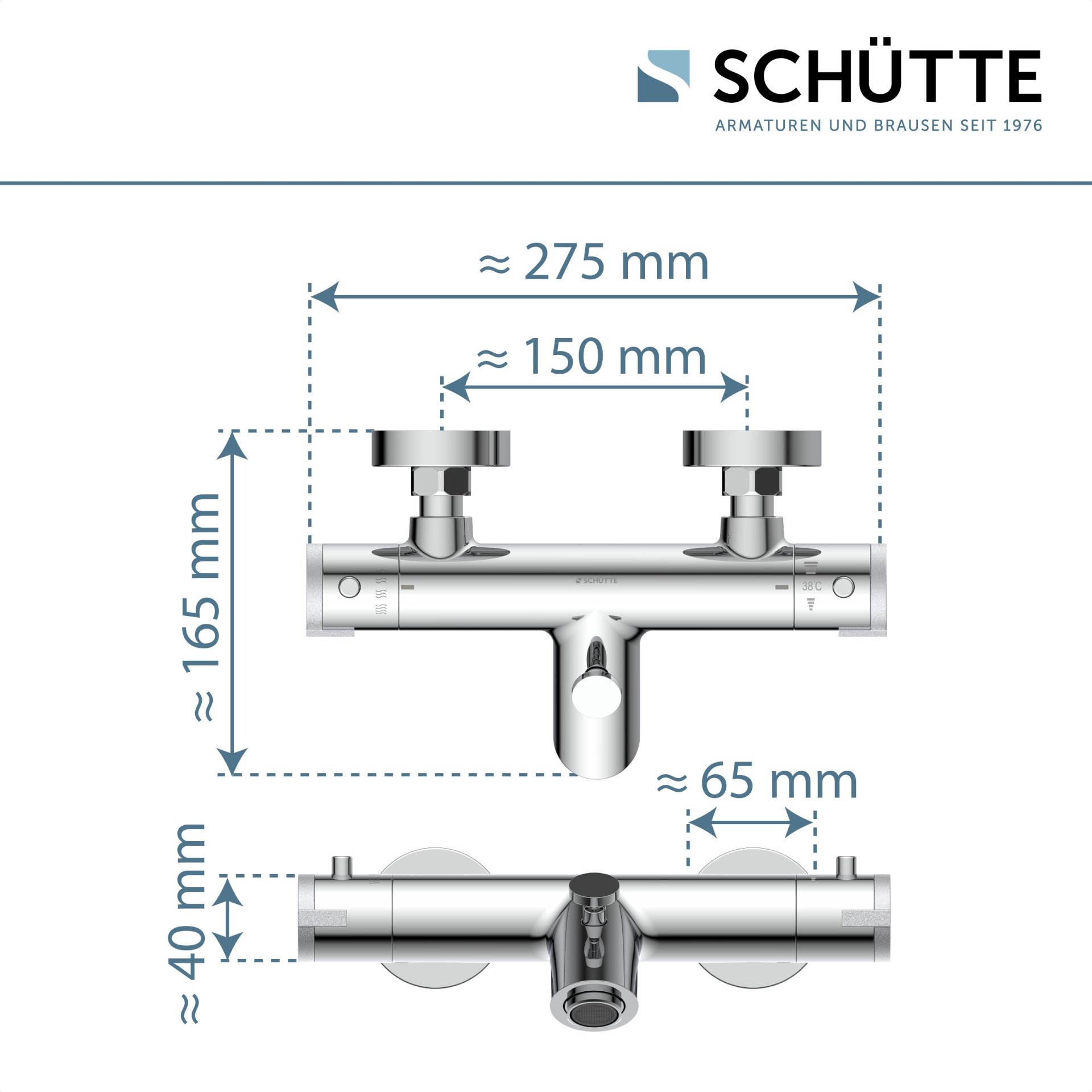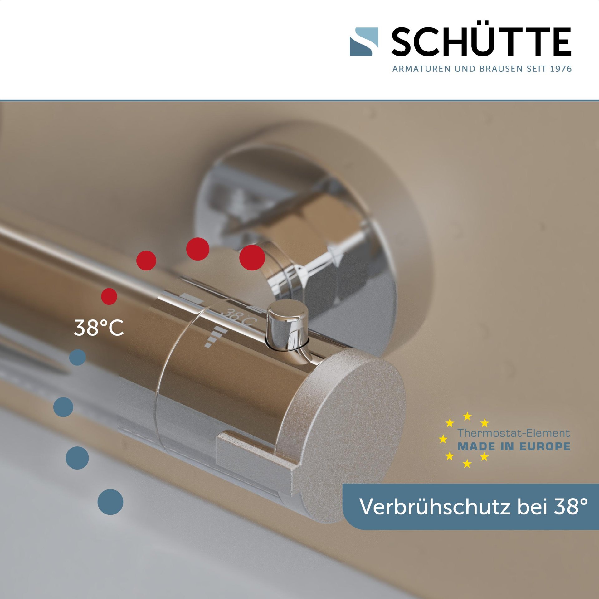 - Thermostatarmatur mit Sicherheitssperre bei 38°C minimiert das Risiko für Verbrühungen