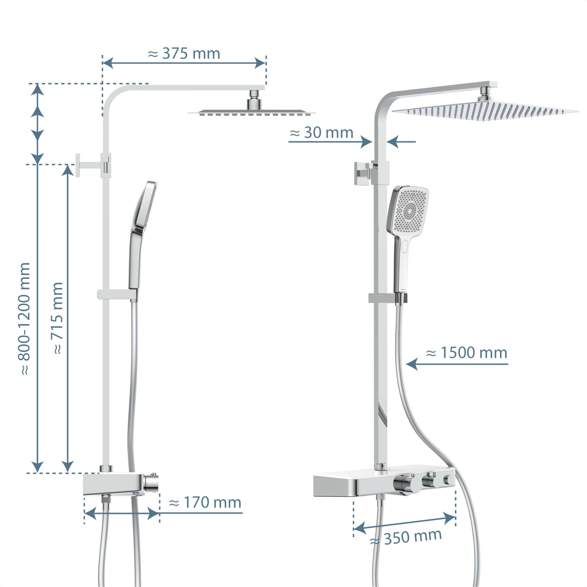 Schütte OCEAN Überkopf-Brauseset Chrom/Weiß, mit Duschthermostat und Ablage