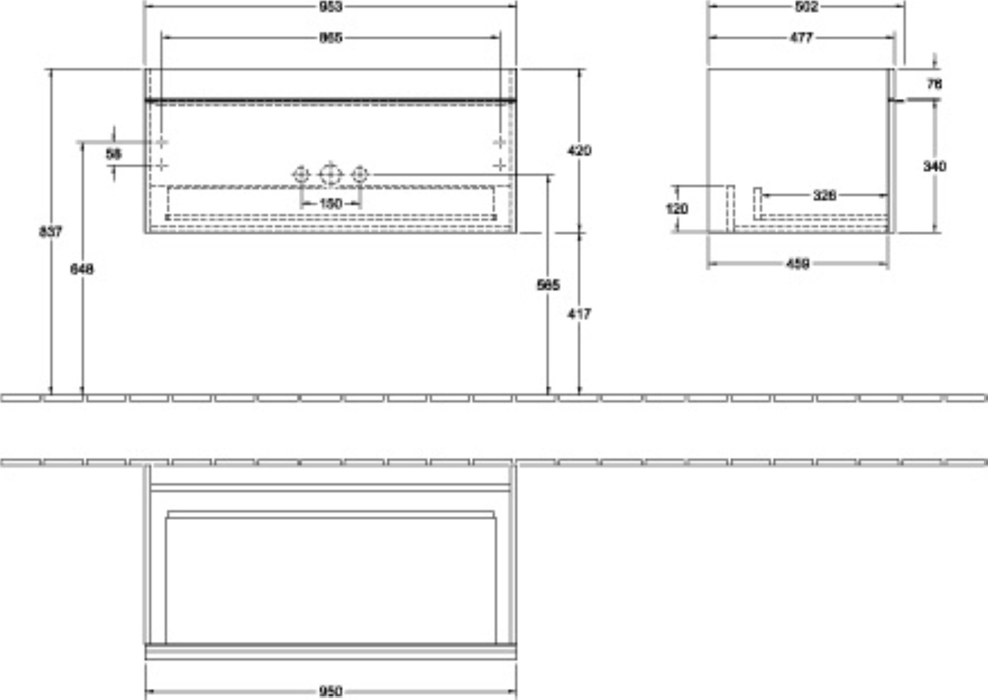 - Maße (B x H x T): ca. 95,3 x 42 x 50,2 cm