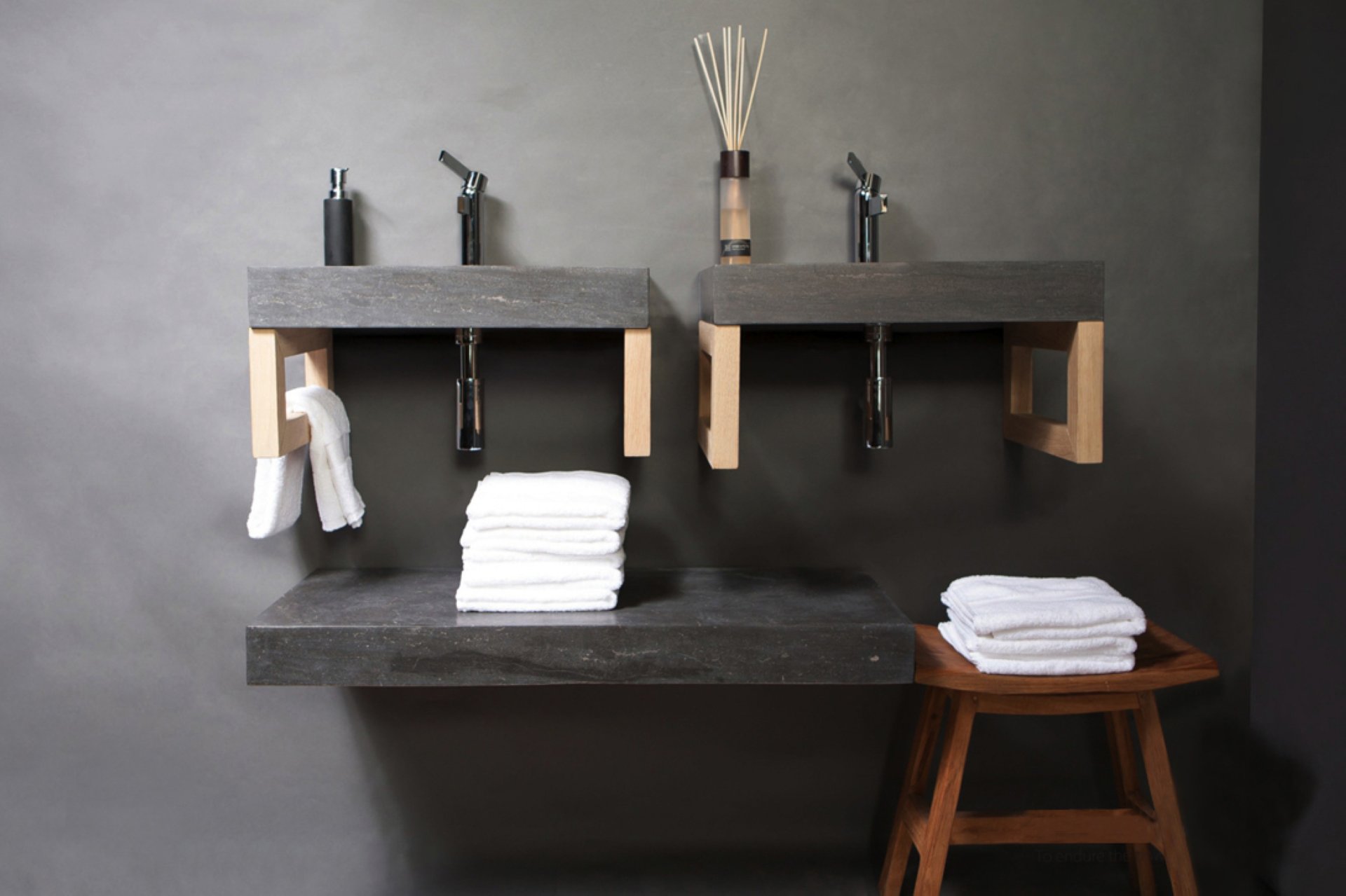 Forzalaqua Waschbecken Naturstein PALERMO (60 cm) Bluestone, mit Hahnloch, 100036