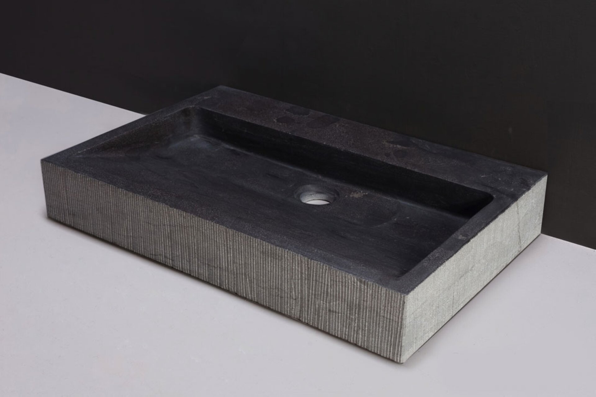 Mit dem rechteckigen Natursteinbecken aus der Serie PALERMO von Forzalaqua zieht das italienische Lebensgefühl in Dein Badezimmer ein. Mit einer Breite von 80,5 cm und seinem exklusiven Design ist der Waschtisch optimal für jedes Bad geeignet. Zwei vorgebohrte Hahnlöcher bieten Platz für die Armaturen – so lässt sich das Steinbecken gut als Doppelwaschbecken im Familienbad einsetzen. Dank der Schönheit des reinen Natursteins und der besonderen Verarbeitung lässt das Becken das Gefühl von Luxus im Badezimmer aufkommen. Mit viel Liebe zum Detail und in echter Handarbeit wird das Aufsatzbecken aus einem einzelnen Stück Naturstein hergestellt. Eine moderne Linienführung setzt die Optik des Bluestones in Szene. Hingucker ist die gemeißelte Außenseite des Waschtischs, die in einem rauen Kontrast zu der matt geschliffenen Innenseite des Beckens steht. Der Waschtisch kann mit Aufhängebeschlägen an der Wand befestigt werden oder in Kombination mit verschiedenen Unterschränken als Aufsatzwaschtisch verwendet werden.