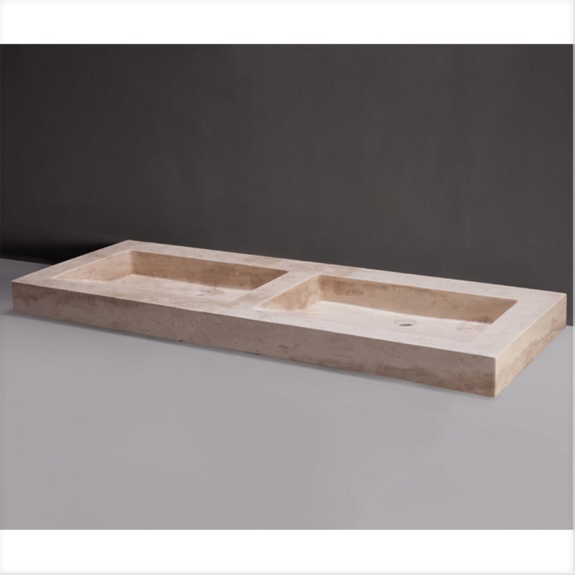 Forzalaqua Waschbecken Naturstein PALERMO DOPPIO 140,5 cm breit, Travertin, ohne Hahnloch, 100218