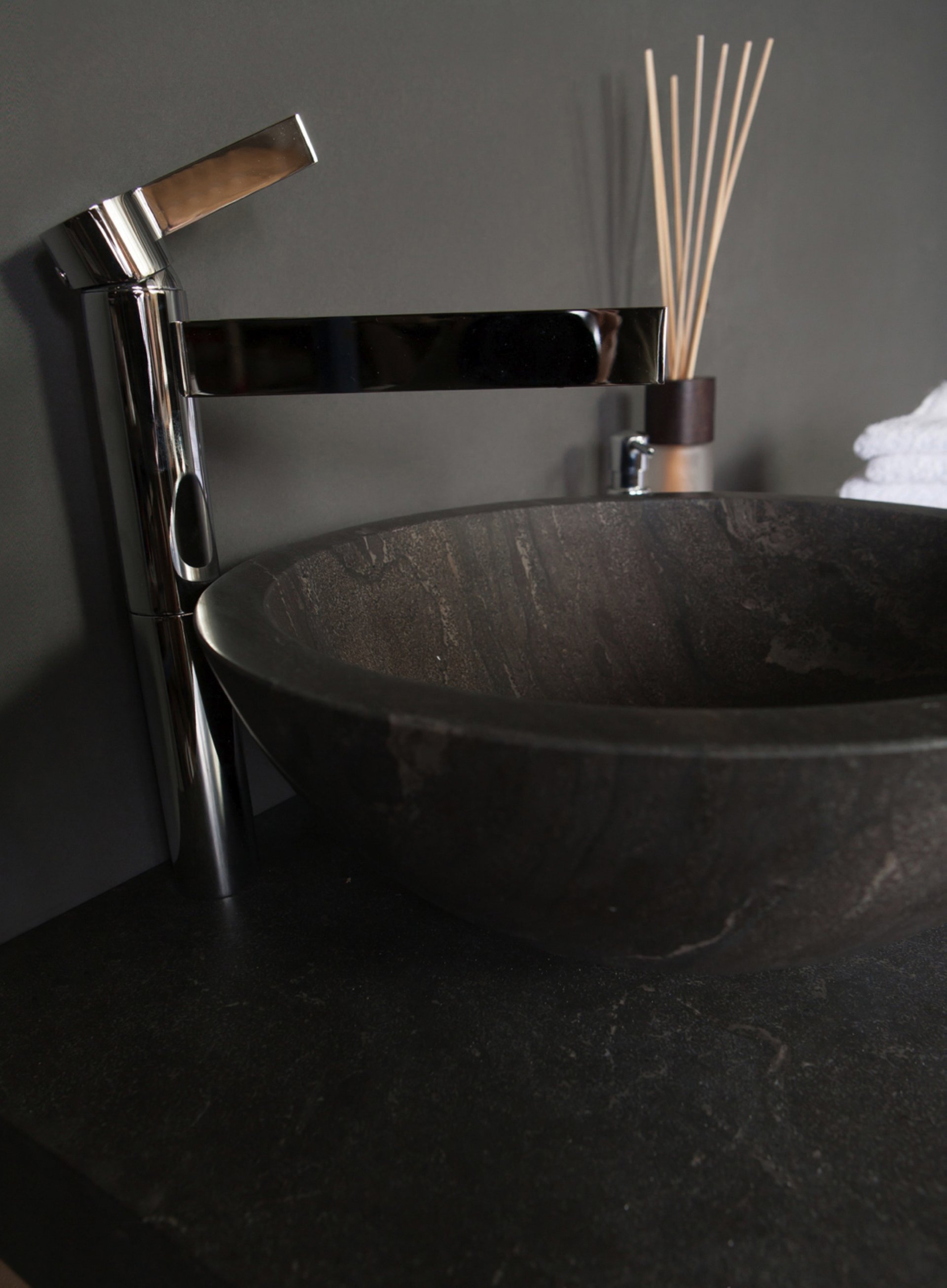 Das runde Natursteinbecken aus der Serie ROMA von Forzalaqua hat eine exklusive Ausstrahlung. Dank der Schönheit des reinen Natursteins und der besonderen Verarbeitung lässt es Dich jeden Morgen aufs Neue die Zeit im Badezimmer vergessen. Das moderne, schwarze Aufsatzbecken wird mit viel Liebe zum Detail in Handarbeit aus einem einzelnen Stück Naturstein hergestellt. Das Becken mit einer tiefen Waschmulde besteht aus matt geschliffenem Bluestone. Es besitzt kein Hahnloch und ist damit hervorragend für Wandarmaturen geeignet. Forzalaqua-Waschtische zeichnen sich durch die ebenso robuste wie elegante Ausstrahlung aus. Aufgrund der praktischen Größe eignet sich das Waschbecken auch optimal für kleine Bäder und Gäste-WCs.