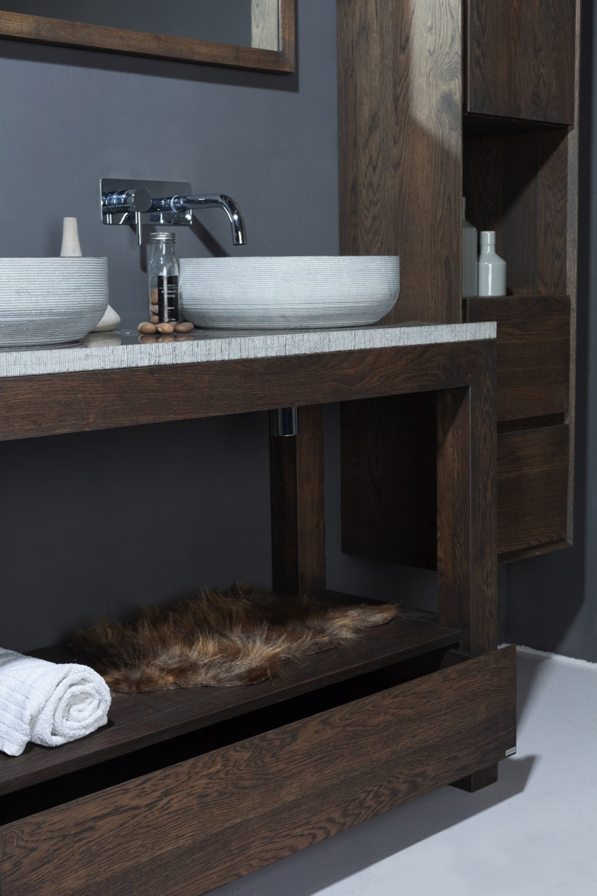 Das runde Natursteinbecken VERONA von Forzalaqua überzeugt mit einer exklusiven Ausstrahlung. Dank der Schönheit des reinen Natursteins und der besonderen Verarbeitung lässt es Dich jeden Morgen aufs Neue die Zeit im Badezimmer vergessen. Das moderne schwarze Aufsatzbecken wird mit viel Liebe zum Detail in Handarbeit aus einem einzelnen Stück Naturstein hergestellt. Es besteht aus gemeißeltem Bluestone, wodurch die Front einen edlen Grauton aufweist, und ist ohne Hahnloch. Dadurch eignet sich das Natursteinbecken hervorragend für Wandarmaturen. Forzalaqua-Waschtische zeichnen sich durch ihre ebenso robuste wie elegante Ausstrahlung aus. Auf Grund seiner Größe eignet sich dieses Becken auch optimal für kleine Badezimmer und Gäste-WCs.