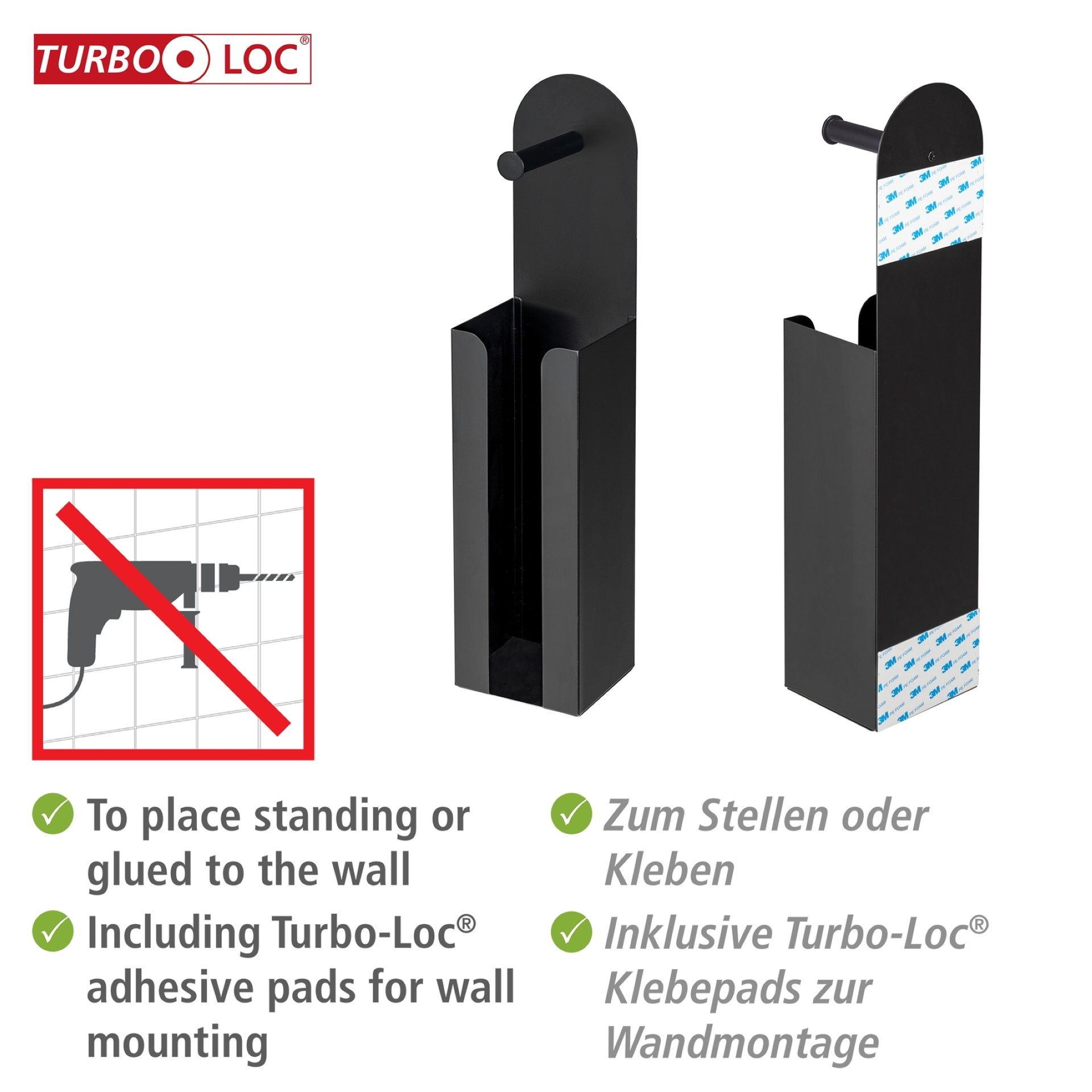 - Der Toilettenpapierhalter kann bequem im Badezimmer neben dem WC auf den Boden gestellt werden. Alternativ ist eine Wandmontage möglich, die mittels des enthaltenen Turbo-Loc® Klebepad-Systems ganz leicht und ohne Werkzeug durchgeführt werden kann. Das Turbo-Loc® System von WENKO sorgt für festen Halt auf allen glatten Oberflächen - einfach Schutzfolie abziehen und an der gewünschten Stelle andrücken.