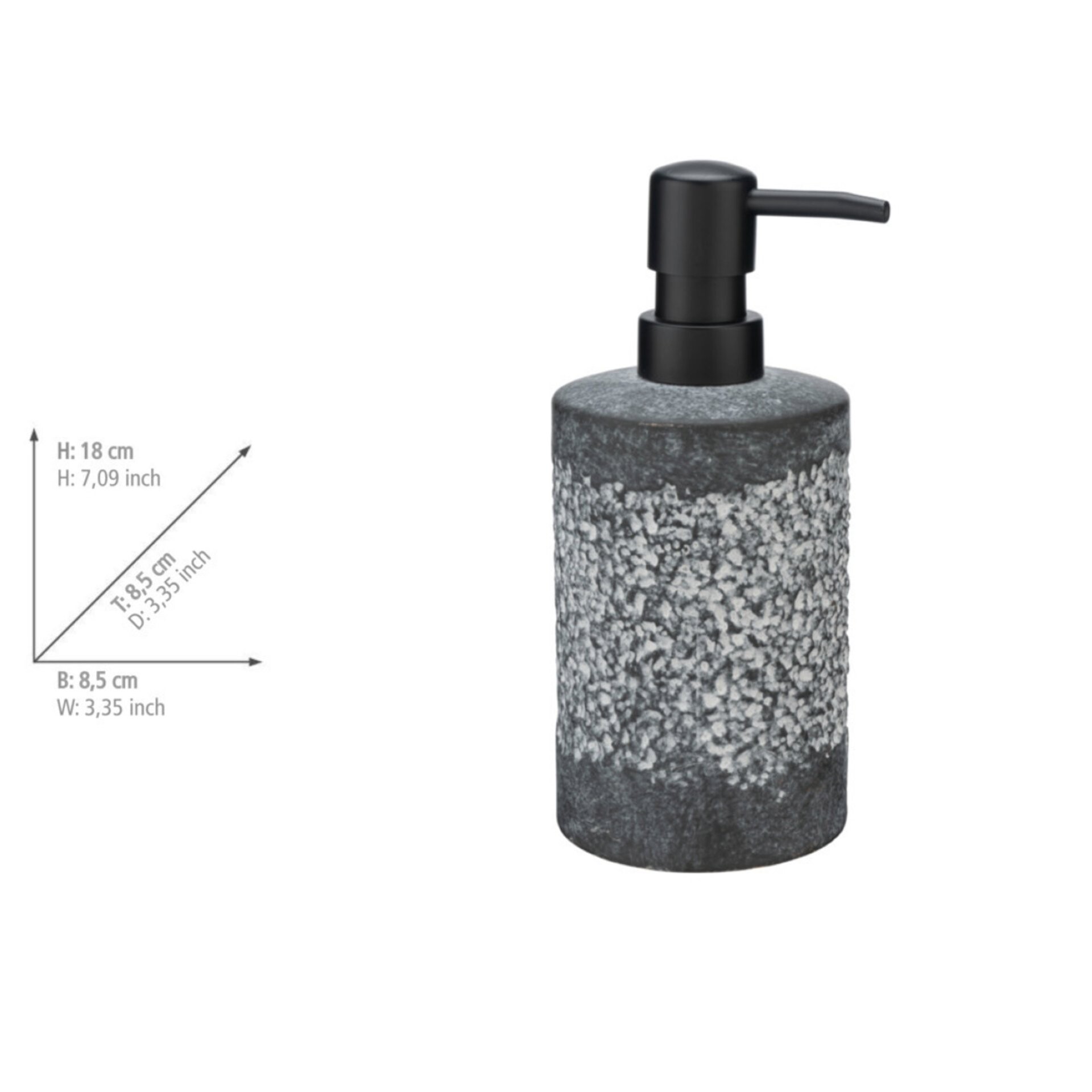 - Der im Set enthaltene Seifenspender bringt optische Finesse in Ihre Handpflegeroutine und ist ein dekoratives Element auf Ihrem Waschbeckenrand. Das Fassungsvermögen des Seifenspenders beträgt ca. 390 ml, die Maße belaufen sich auf (B x H x T): 8,5 x 18 x 8,5 cm.