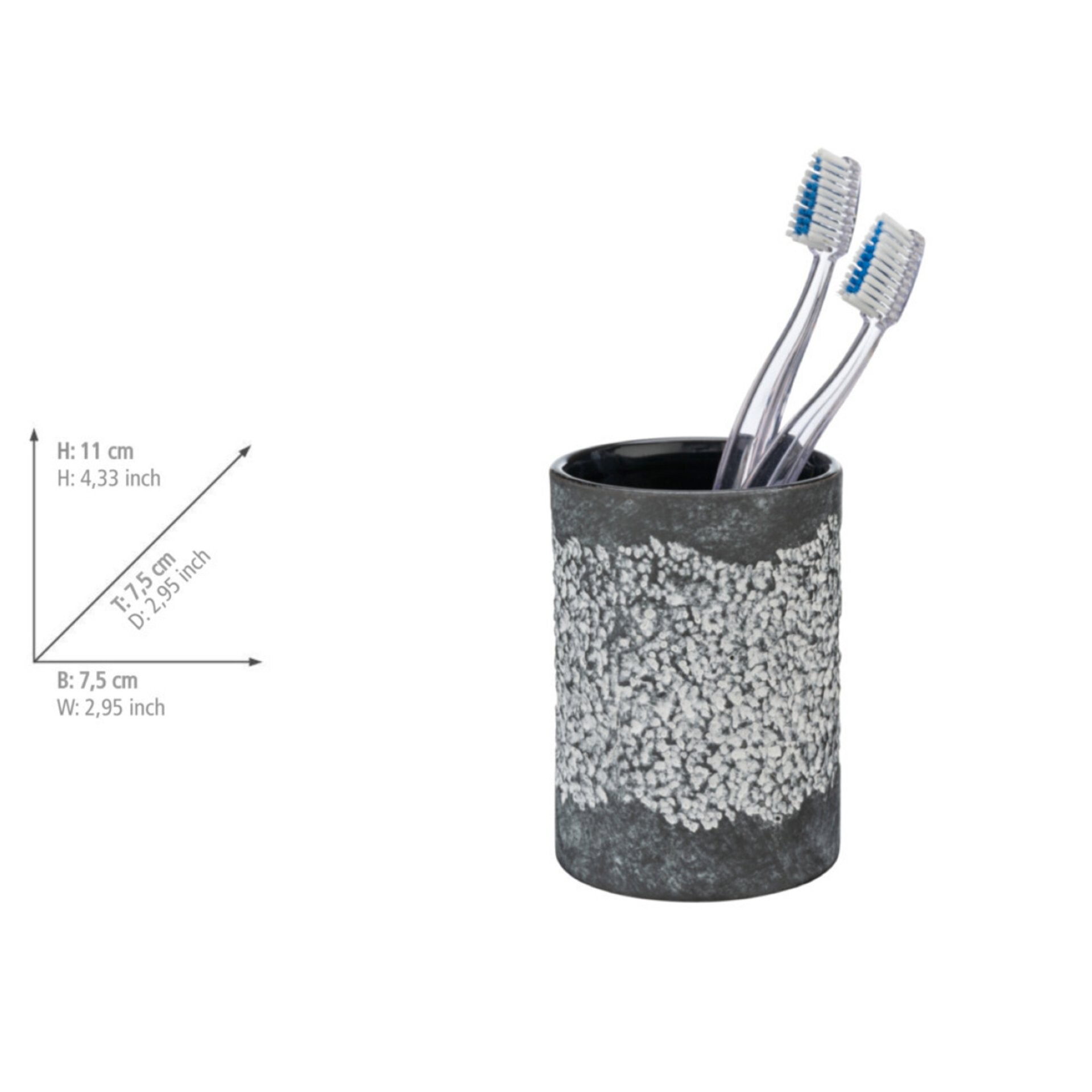 - Der Zahnputzbecher Anfo erweist sich als praktischer Helfer und macht die Aufbewahrung Ihrer Zahnpflegeutensilien zu einem optisch ansprechenden Highlight. Auch andere Utensilien wie Kosmetikpinsel, Schminkstifte oder Pflegeprodukte können Sie in dem Becher dekorativ präsentieren. Die Maße des Mundspülbechers belaufen sich auf (B/T x H): Ø 7,5 x 11 cm.