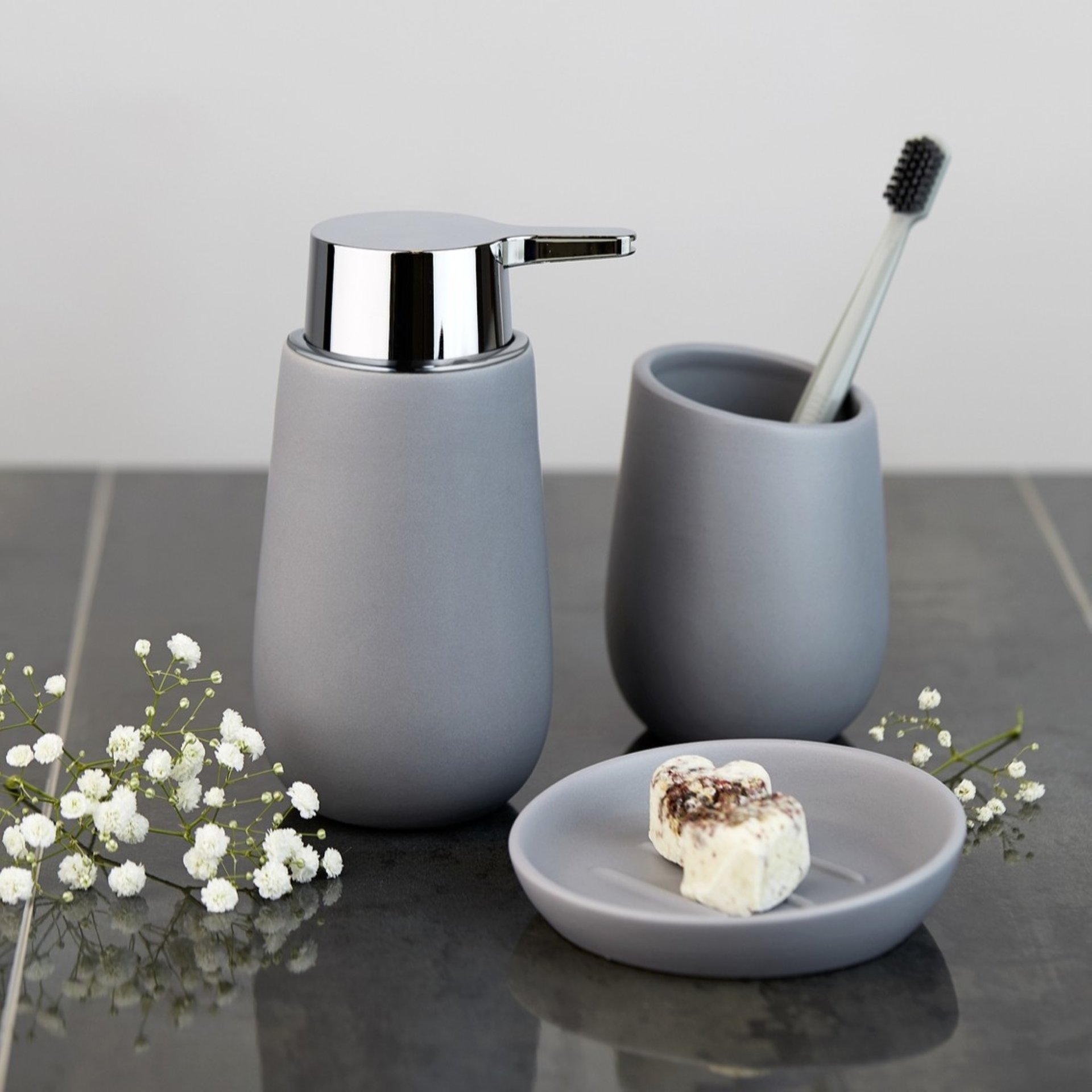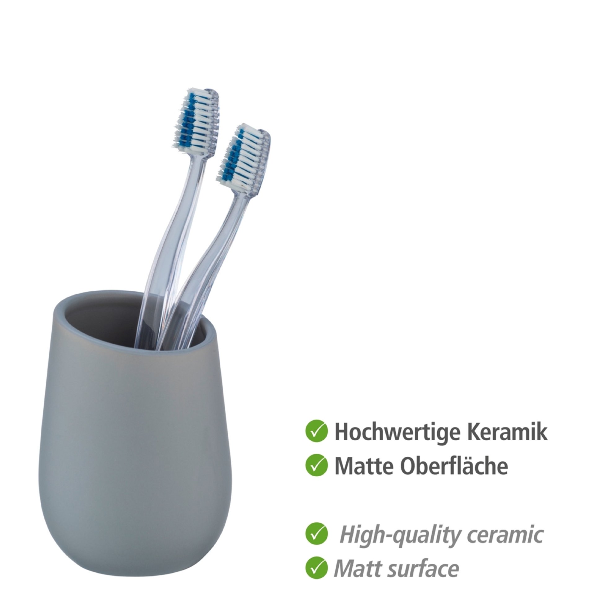 WENKO BADI Accessoire Set Grau, Zahnputzbecher, Seifenspender, Keramik