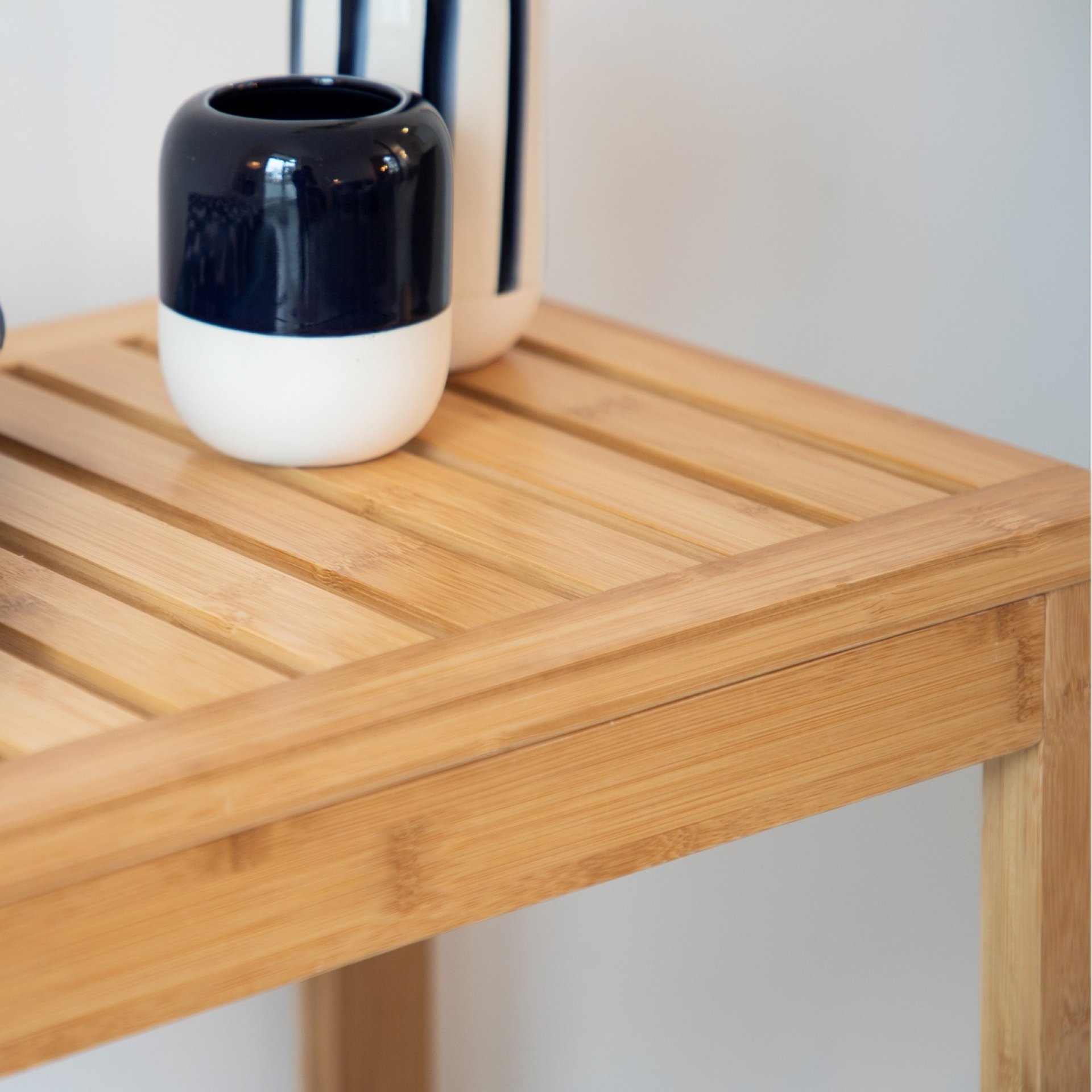 - Der Badhocker Bambusa von WENKO beeindruckt mit einem tollen Design, hochwertiger Verarbeitung sowie einer angenehm natürlichen Optik. Er ist der perfekte Begleiter, um in Ihrem Bad gezielt Akzente zu setzen. Der formschöne Hocker besticht durch eine rechteckige Sitzfläche, in die zur Auflockerung der Optik mehrere rillenförmige Aussparungen eingelassen sind. Die beiden Beine sind rechteckig und offen gestaltet, so runden sie das harmonische Design ab. Die Sitzgelegenheit aus Bambus sieht dadurch dekorativ aus und lädt regelrecht dazu ein, im Badezimmer komfortabel Platz zu nehmen. Der Alltagshelfer misst 40 x 30 x 46 cm und eignet sich auch optimal als Zwischenablage für Handtücher und Kleidung vor einem heißen Schaumbad. Besonders praktisch: Das Möbelstück hat eine Belastbarkeit von bis zu 120 kg.