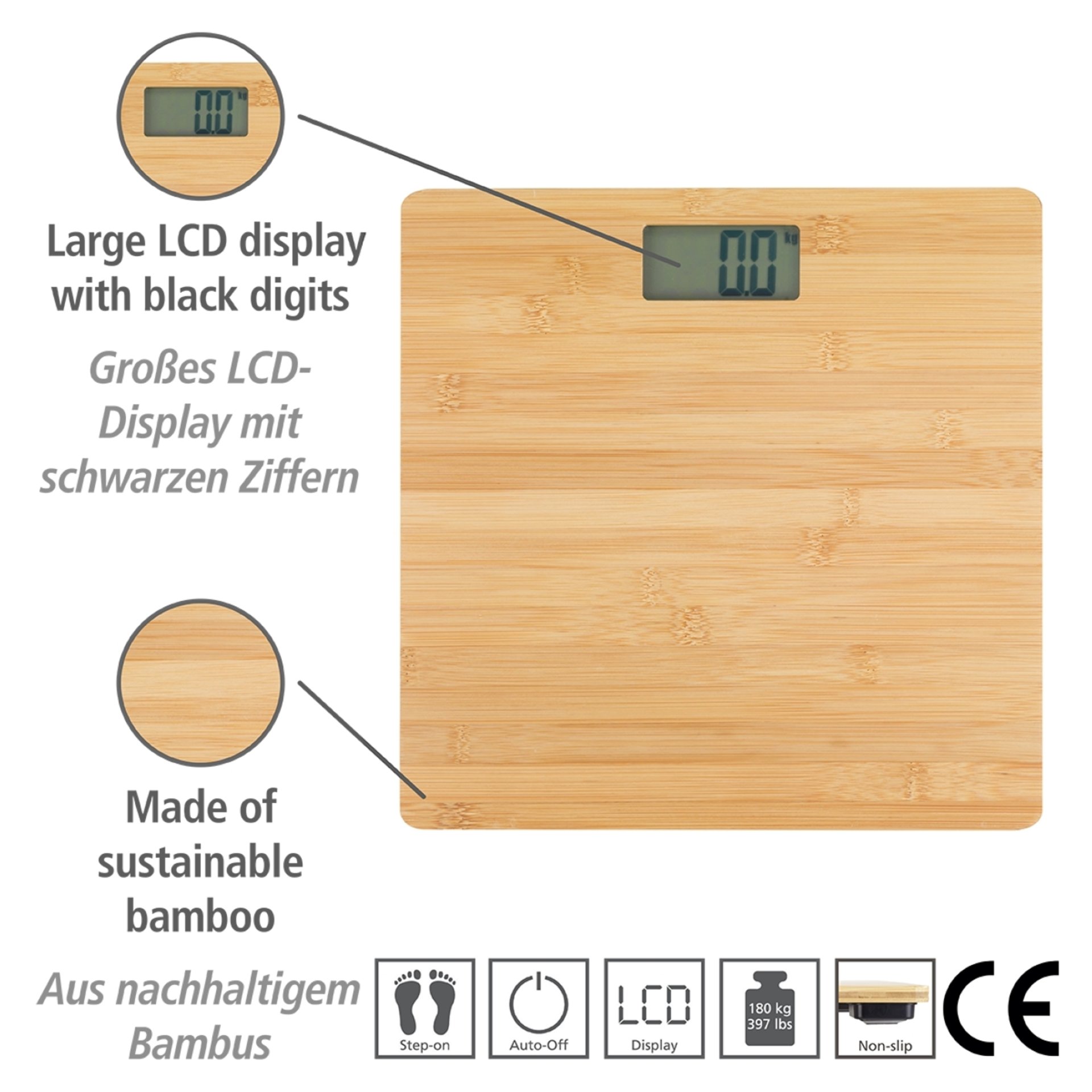 WENKO BAMBUSA Personenwaage Braun, bis 180 kg, aus Bambus