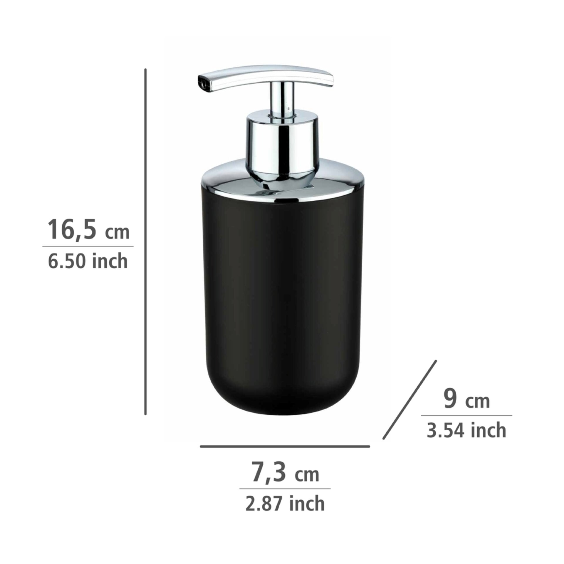 - Der Seifenspender überzeugt durch Qualität und Design. Der Aufsatz ist verchromt und wirkt harmonisch mit dem unteren Teil des Spenders zusammen. Der hübsche Spender kann individuell mit 320 ml Flüssigseife oder Waschlotion gefüllt werden. Durch leichten Druck auf den Dosierknopf wird die gewünschte Menge Seife bzw. Lotion herausgepumpt.