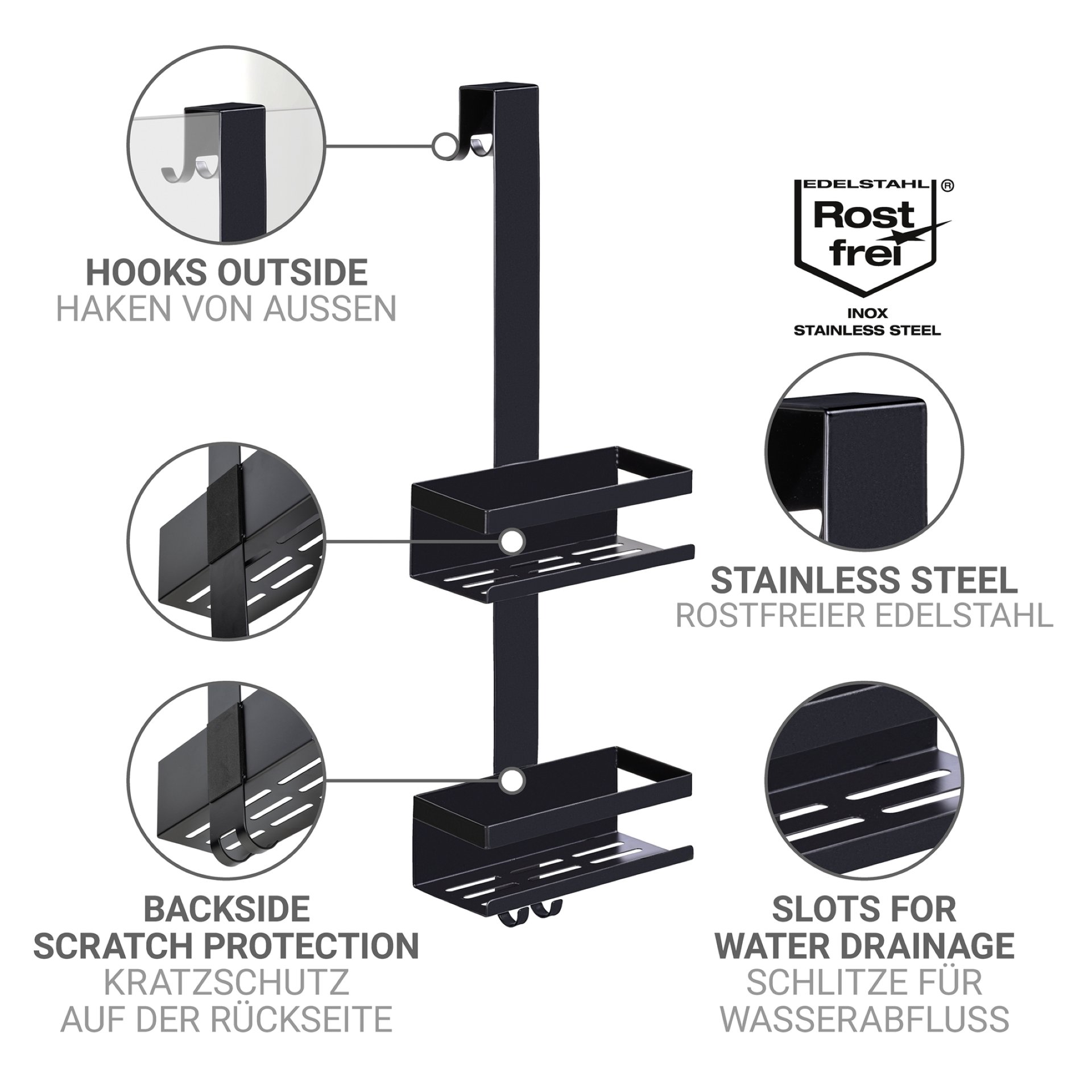 WENKO BRIBANO Duschablage Schwarz, 2 Etagen, zum Einhängen