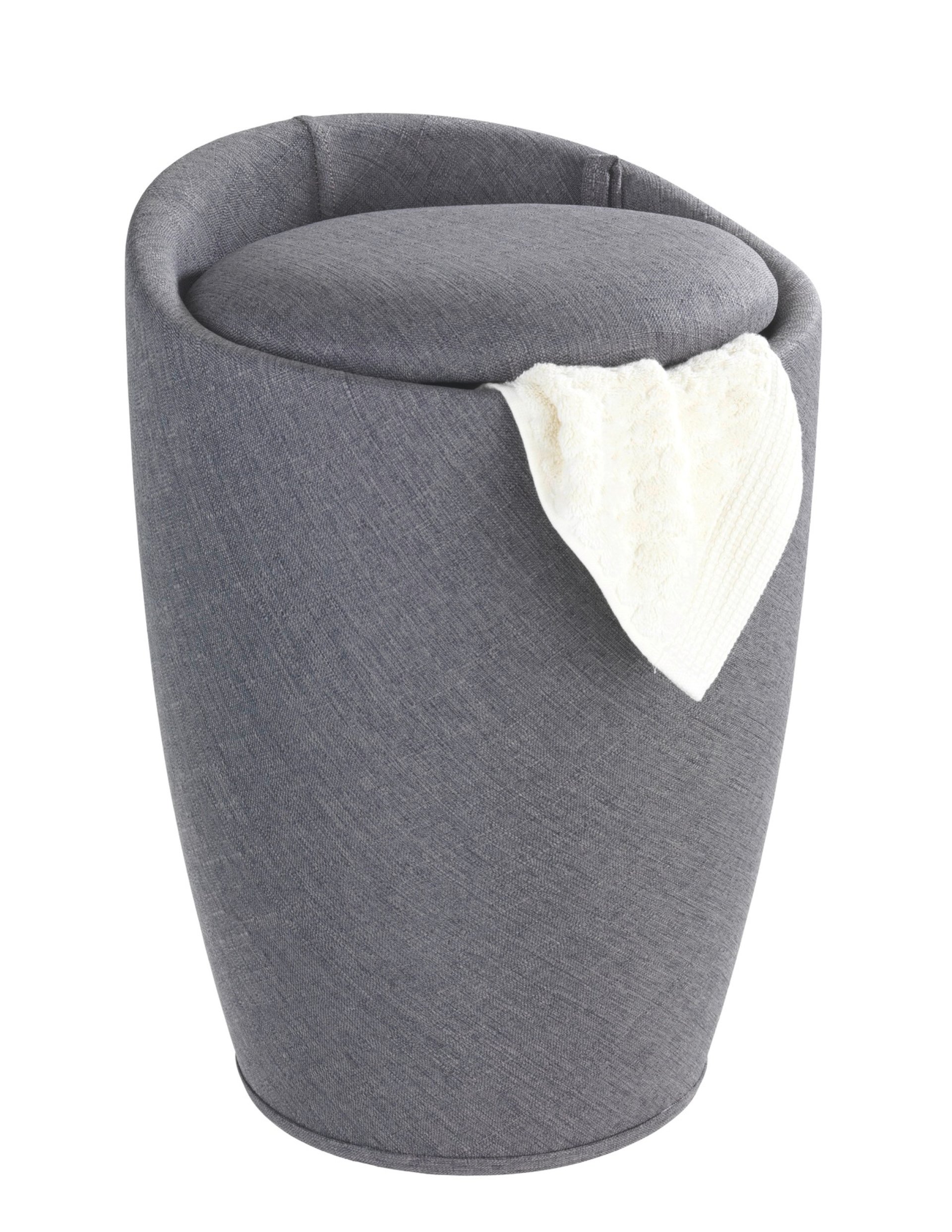 WENKO CANDY Badhocker Grau, Leinenoptik, mit abnehmbarem Wäschesack