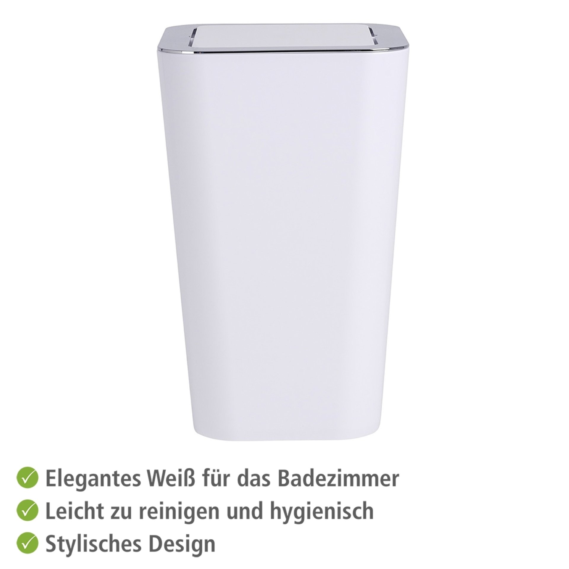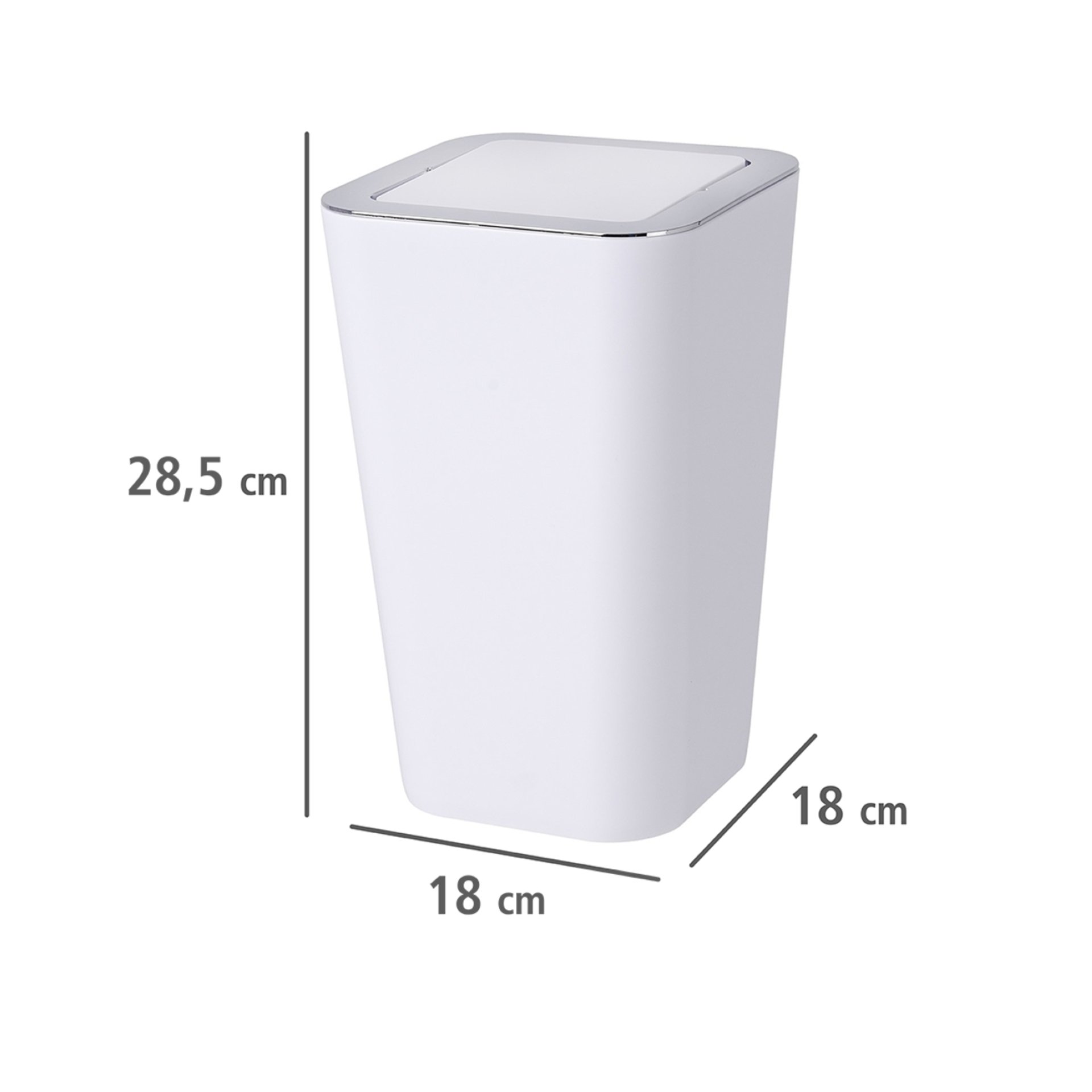 Der formschöne Kosmetikeimer in Weiß aus der Bad-Serie Candy überzeugt durch sein elegantes Äußeres. Der Schwingdeckeleimer mit einem Fassungsvermögen von 6 Litern ist aus hochwertigem, schwerem Kunststoff gefertigt.