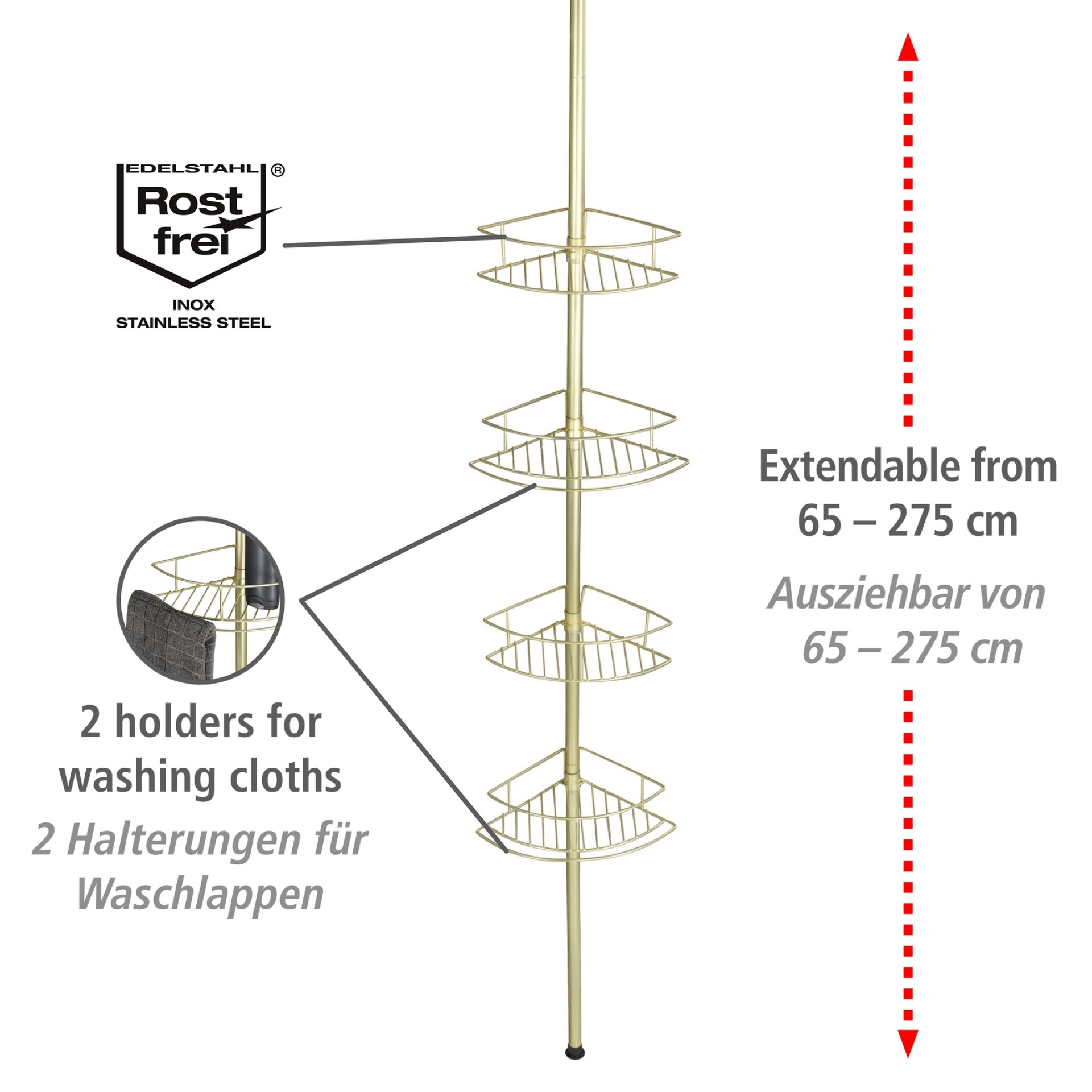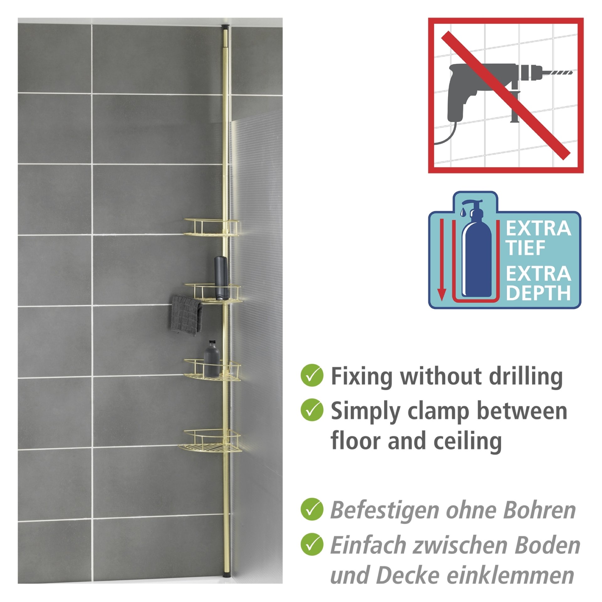 WENKO DOLCEDO Dusch Eckablage Gold matt, 4 Etagen, Edelstahl rostfrei, zum Einklemmen