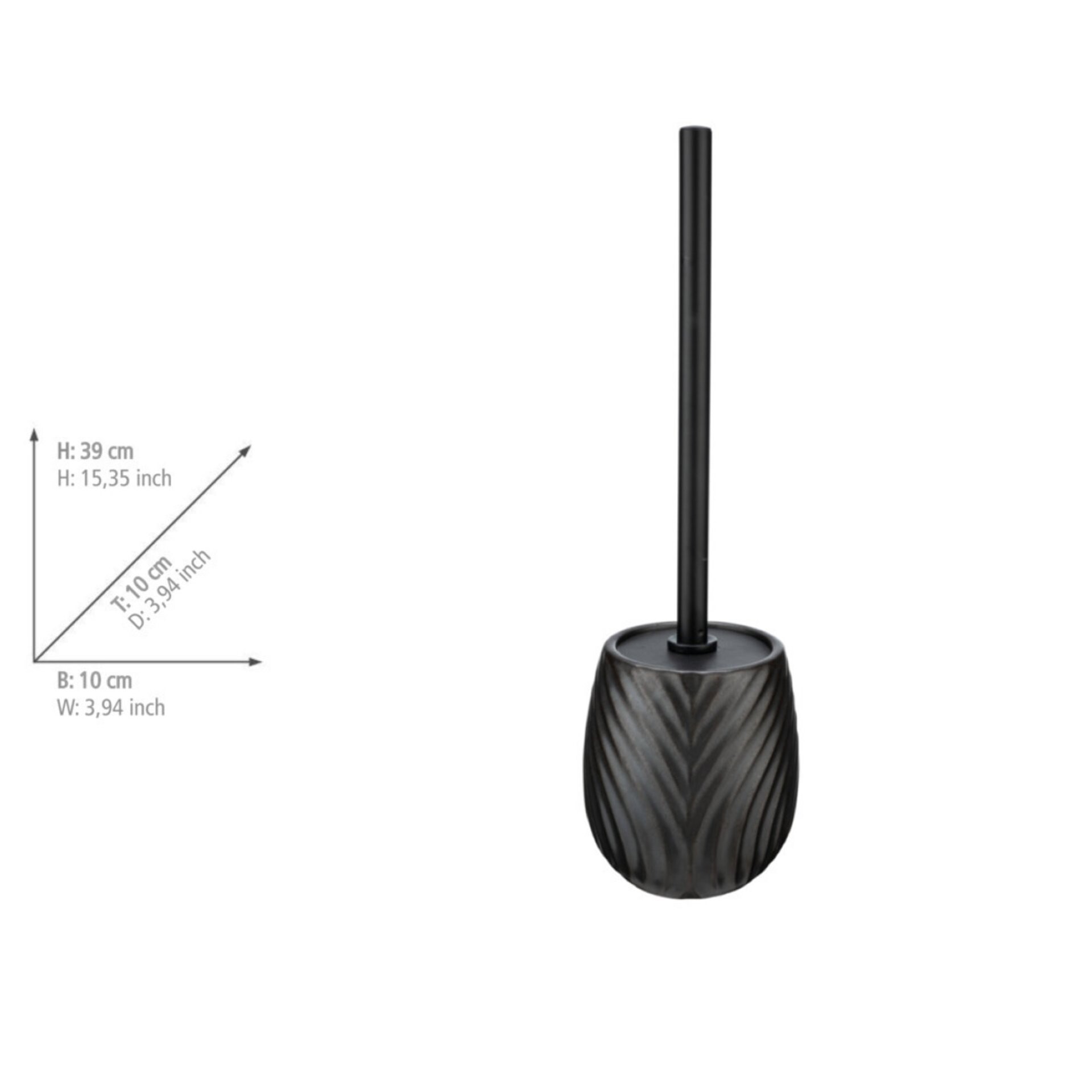 - Die anthrazitfarbene WC-Garnitur der Serie Idro setzt mit ihrer vornehmen Gestaltung einen extravaganten Akzent in Ihrem Badezimmer, Maße (B/T x H): Ø 10 x 39 cm. Der Stiel der WC-Bürste und die flexible Kunststoffabdeckung, die den Bürstenhalter verschließt, sind in tiefem Schwarz gehalten, wodurch sie sich nahtlos in das ansprechende Design der Serie einfügen. Dieses Detail bereichert nicht nur die Ästhetik, sondern betont auch die durchdachte Noblesse von Idro – eine faszinierende Aura, die selbst im Badezimmer spürbar ist.