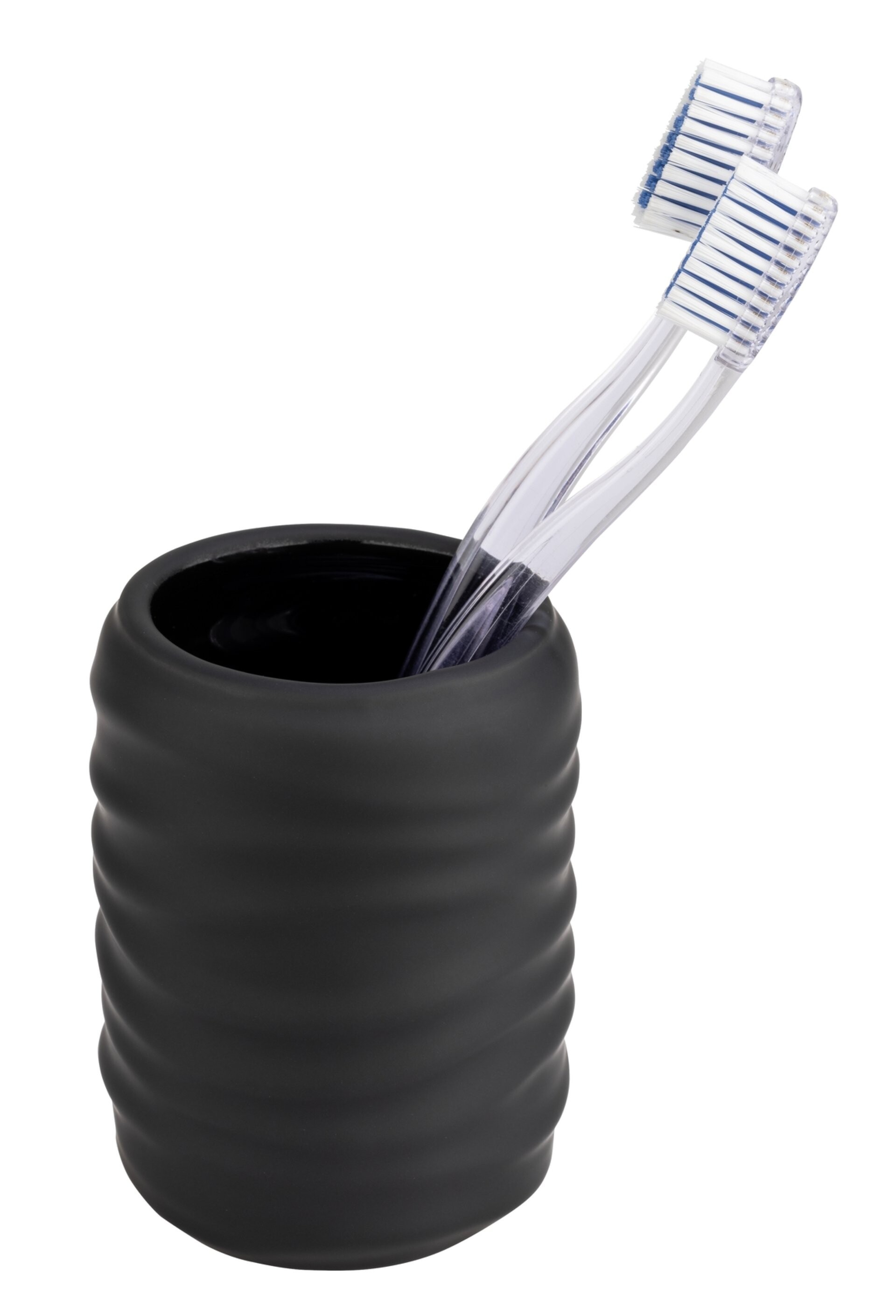 WENKO ILLANA Accessoire Set Schwarz, Zahnputzbecher, Seifenspender, Keramik