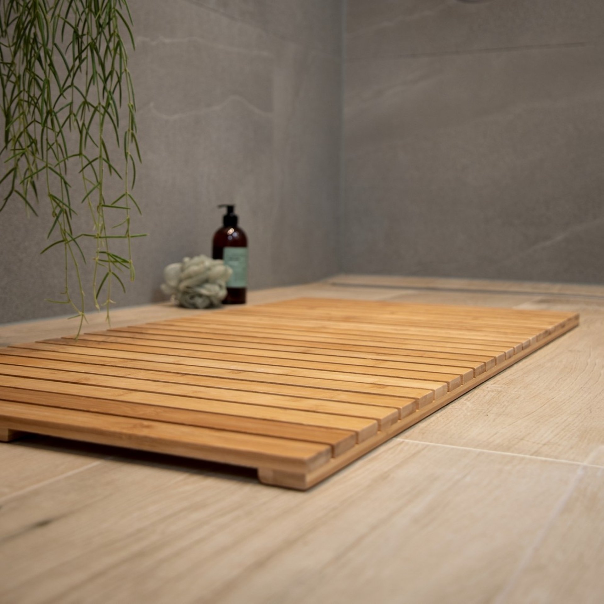 Die praktische Badematte Indoor & Outdoor ergänzt die Badezimmer-Einrichtung um ein funktionelles, natürliches Element bei Dusche und Badewanne.