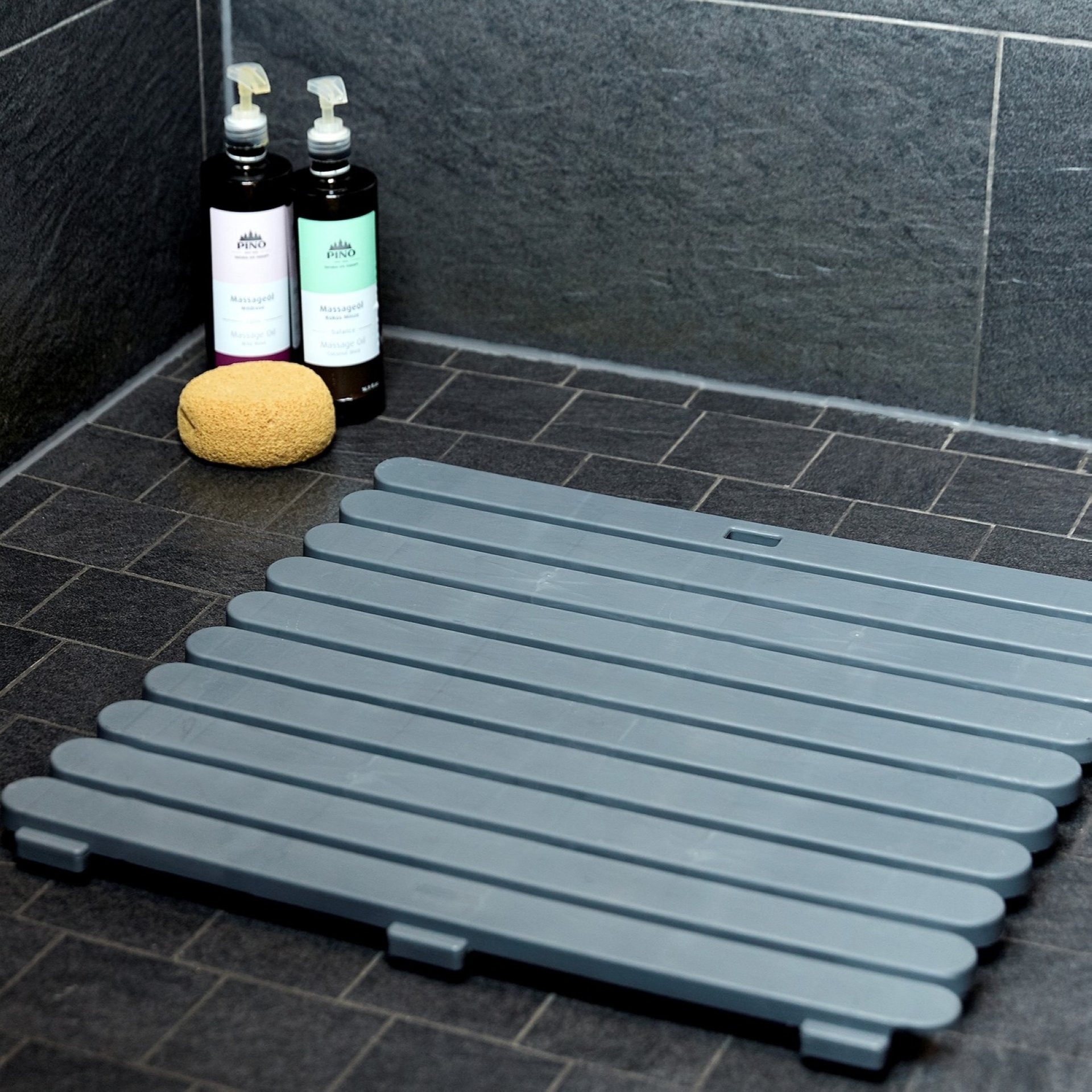 Das Duschrost vermittelt ein sicheres Laufgefühl und hält gleichzeitig die Bodenkälte ab. Die Fußmatte ist mit einer rutschhemmenden Struktur beschichtet.