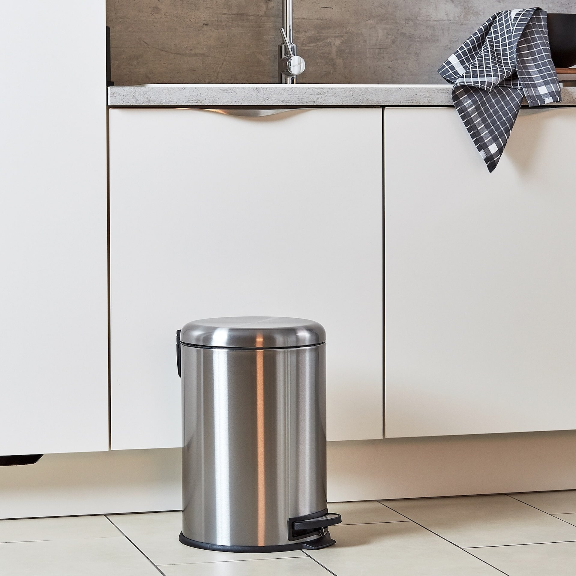 WENKO LEMAN Mülleimer 20 Liter, Silber, Easy Close, Edelstahl