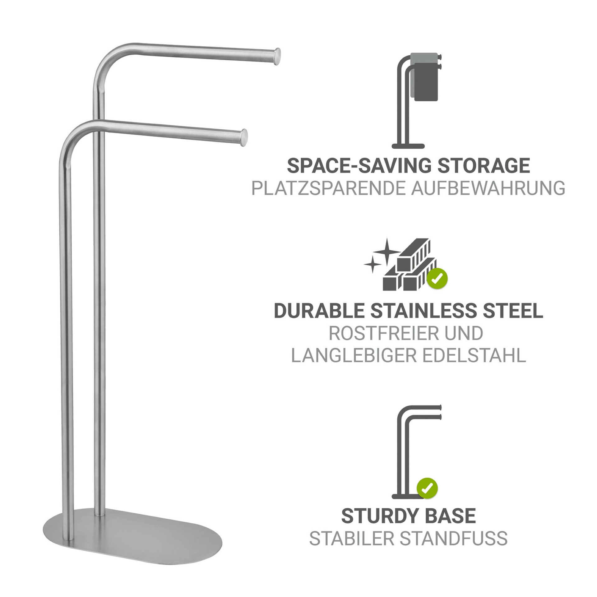 Platzsparender Handtuchständer aus satiniertem Edelstahl, freistehend