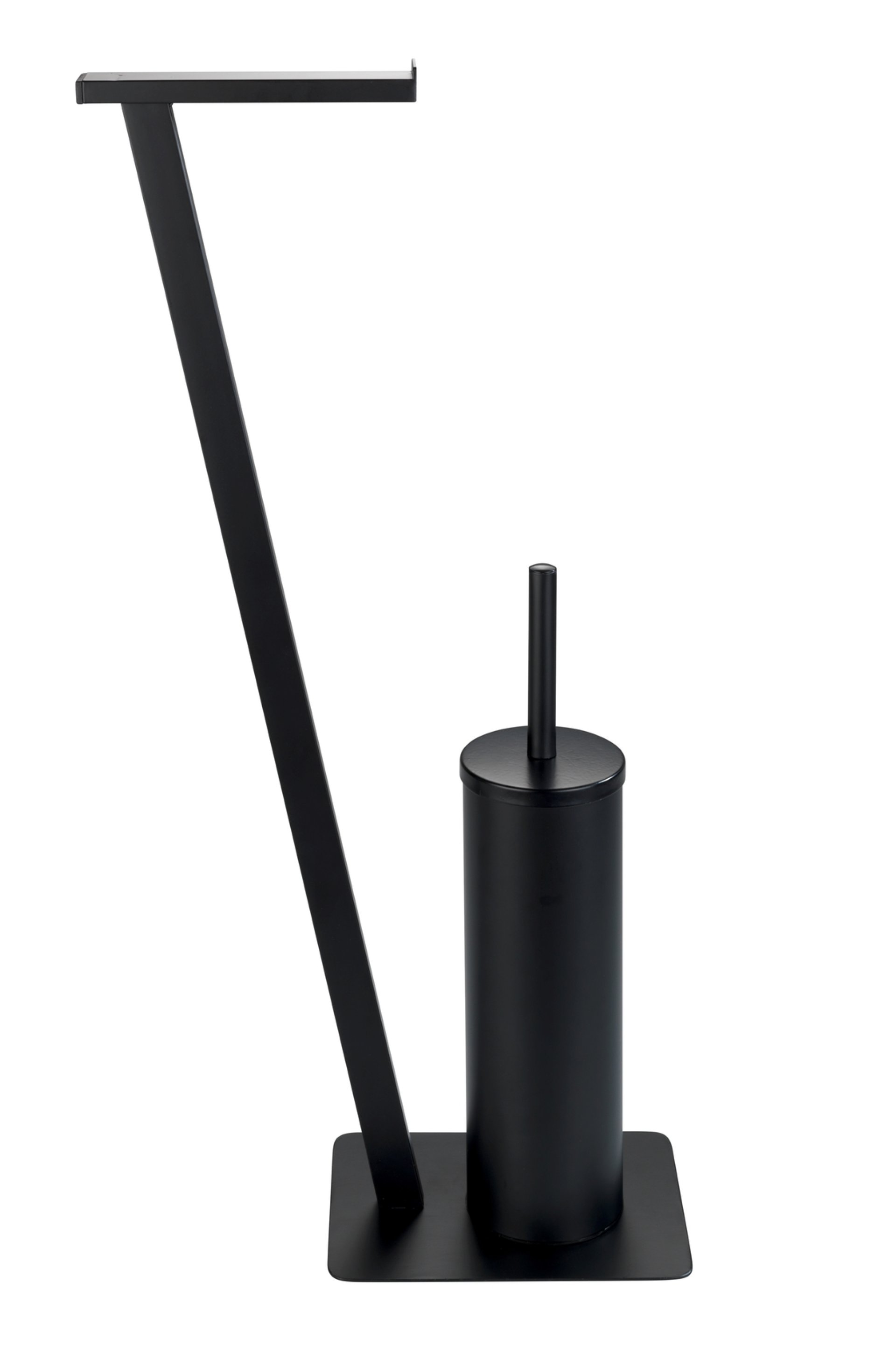 - Lieferumfang: 1 x Stand WC-Garnitur Lirio Schwarz matt, Toilettenpapier-Rollenhalter mit Bürstenhalter von WENKO, aus lackiertem Stahl, Maße (B x H x T): 15 x 68,5 x 30 cm