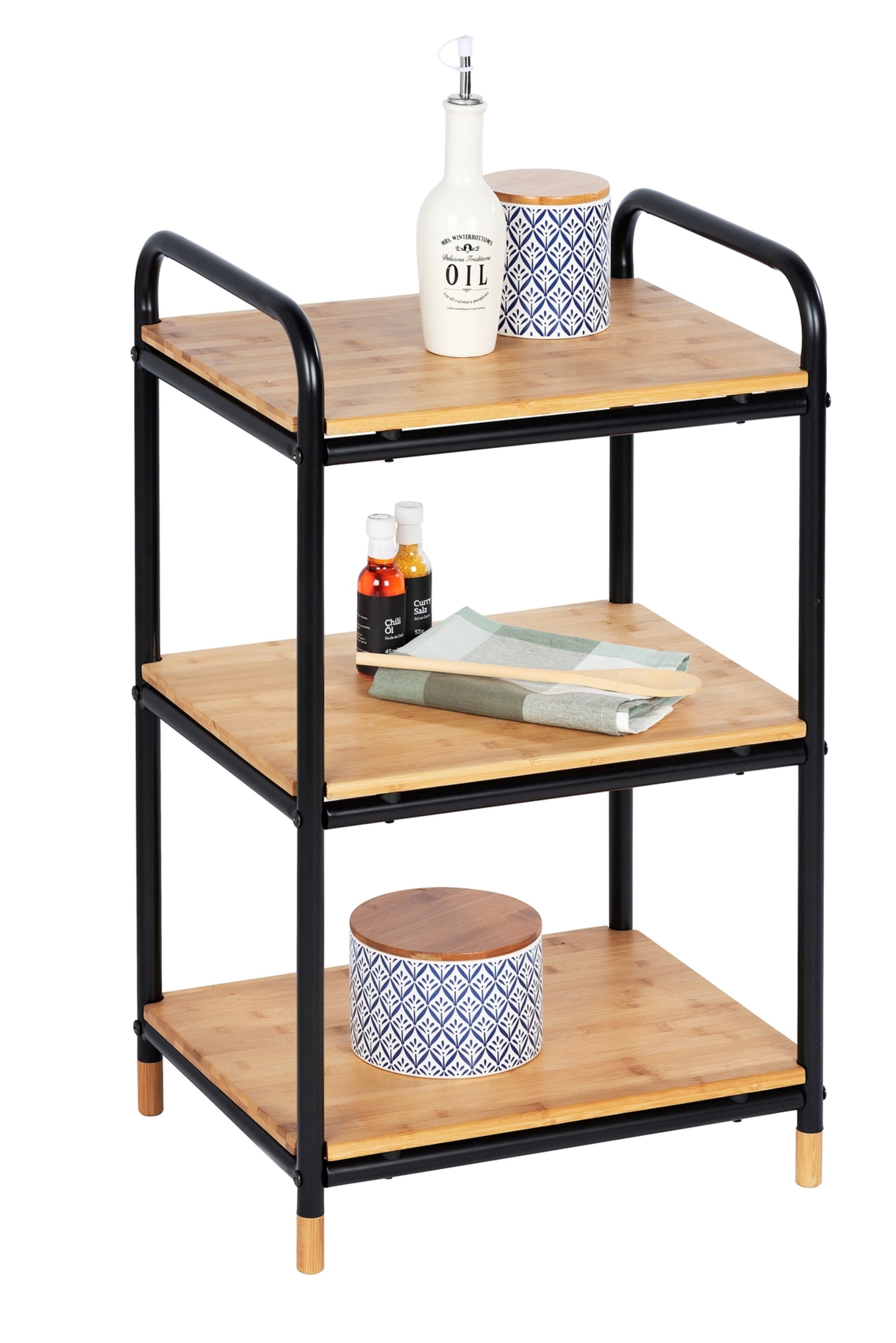 WENKO LOFT Badregal Braun/Schwarz, mit 3 Etagen, Bambus