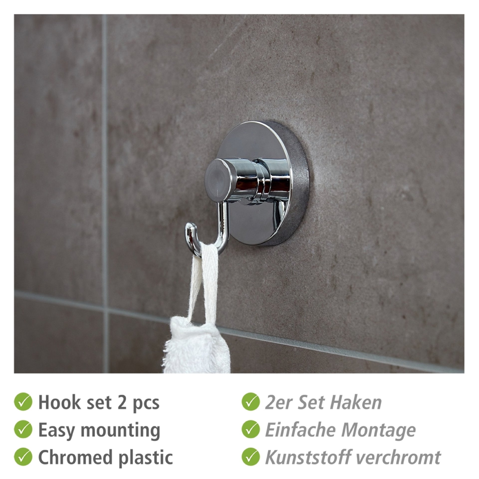 2 Vacuum-Loc® Wandhaken aus stabilem Kunststoff zum Aufhängen von Handtüchern und Bademänteln