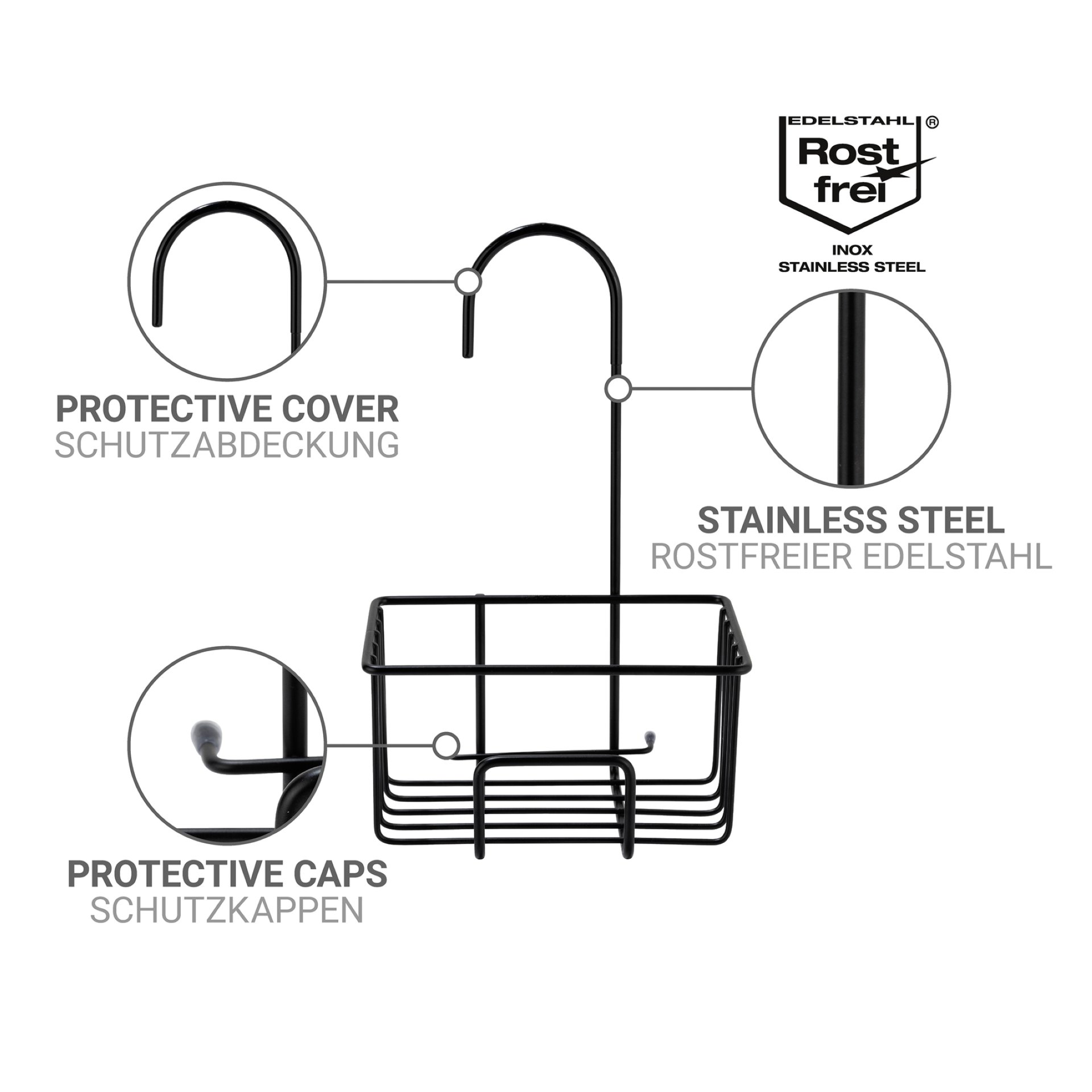WENKO MILITO Duschablage Schwarz, Edelstahl rostfrei, zum Einhängen
