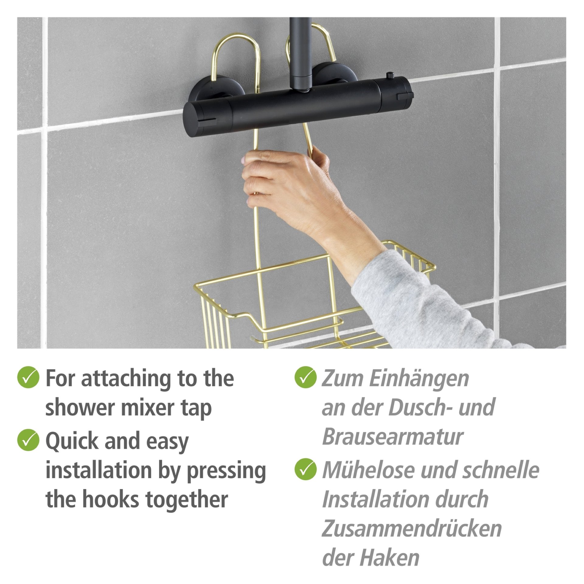 Der Duschcaddy Milo Gold von WENKO dient als praktisches Raumwunder. Perfekt für Badezimmer, die entweder über keine Ablagemöglichkeiten verfügen oder weiteren Platz benötigen.