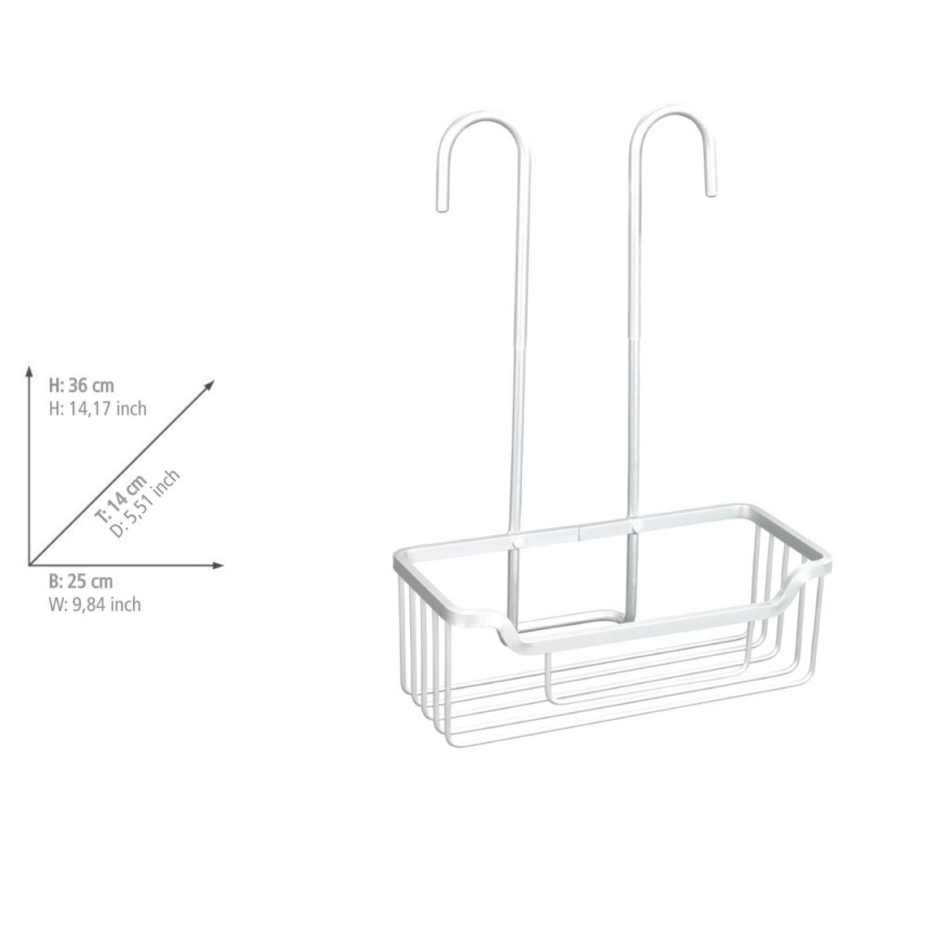 Der Duschcaddy dient als praktisches Raumwunder. Perfekt für Badezimmer, die entweder über keine Ablagemöglichkeiten verfügen oder weiteren Platz benötigen. Mit den beiden Haken kann das Duschregal einfach an die Dusch- und Brausearmatur gehängt werden. Gefertigt ist das hochwertige Badezimmerzubehör aus robustem Aluminium. Der silberne Duschkorb fügt sich dezent in Ihre bestehende Badezimmereinrichtung ein.