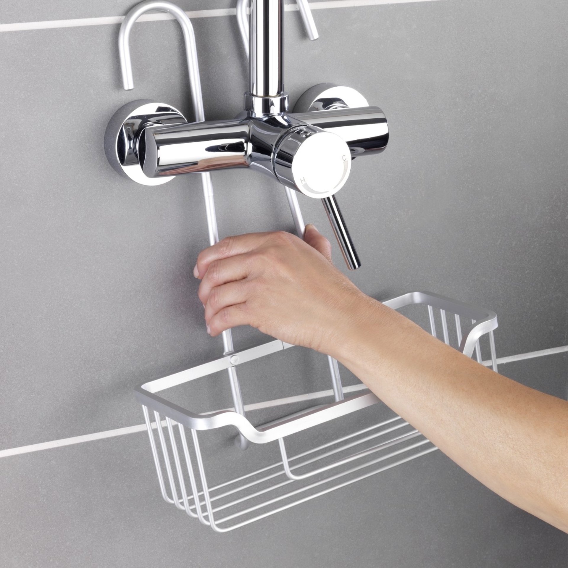 Ein geniales Badaccessoire ist der Thermostat Dusch-Caddy Milo. Der hochwertige Duschdiener bietet viel Platz für alle Dusch-Utensilien. Das rechteckige Duschregal hält Duschgel, Shampoo, Seife oder Schwämme stets griffbereit. Die Ablage verfügt über eine extra Tiefe, so dass alle Flaschen stets sicher stehen.