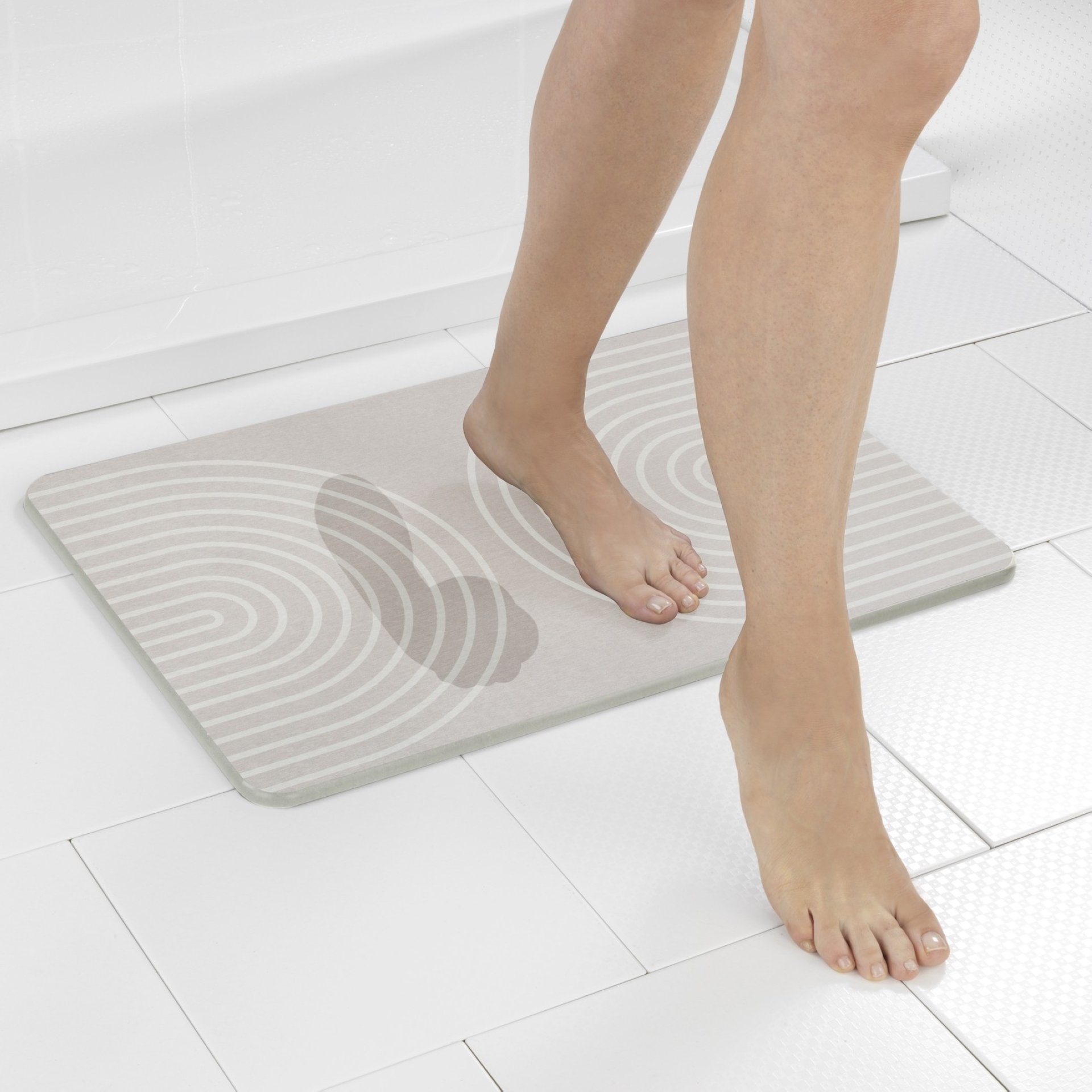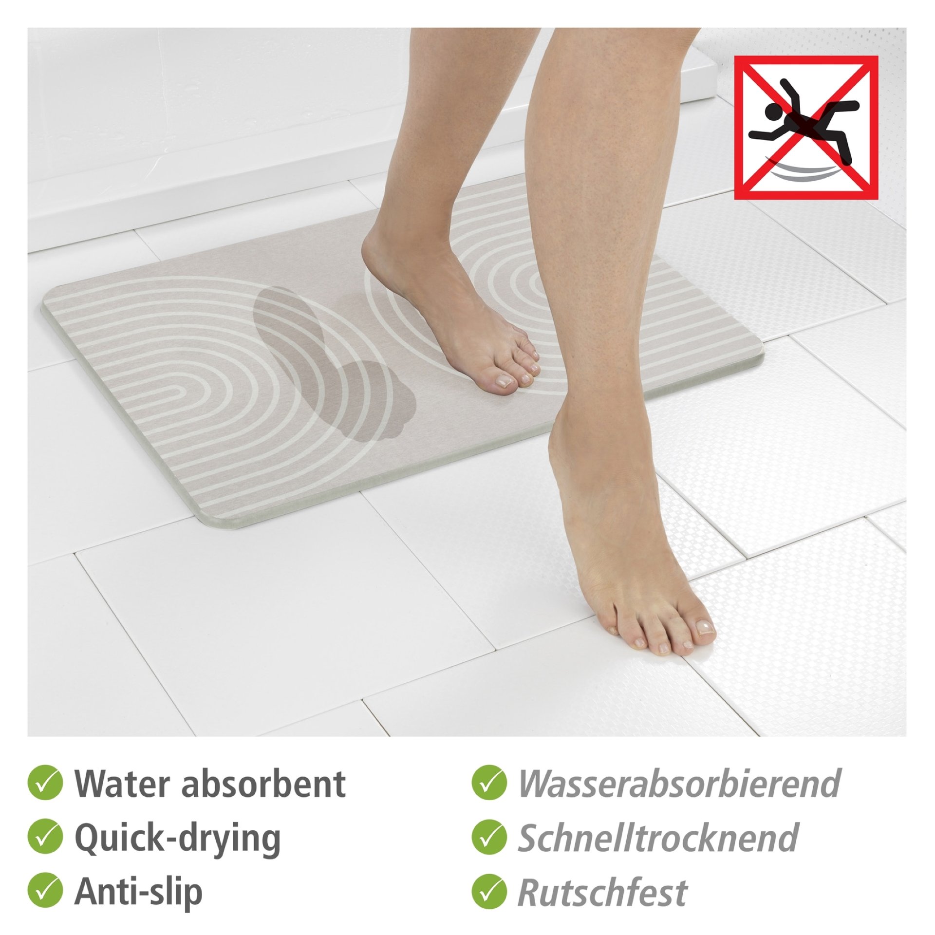 Fußabdrücke auf Bodenfliesen im Bad gehören ab sofort der Vergangenheit an! Die rutschsichere Badematte Nazca von WENKO nimmt die Feuchtigkeit von den Füßen auf und ist dabei absolut hygienisch.