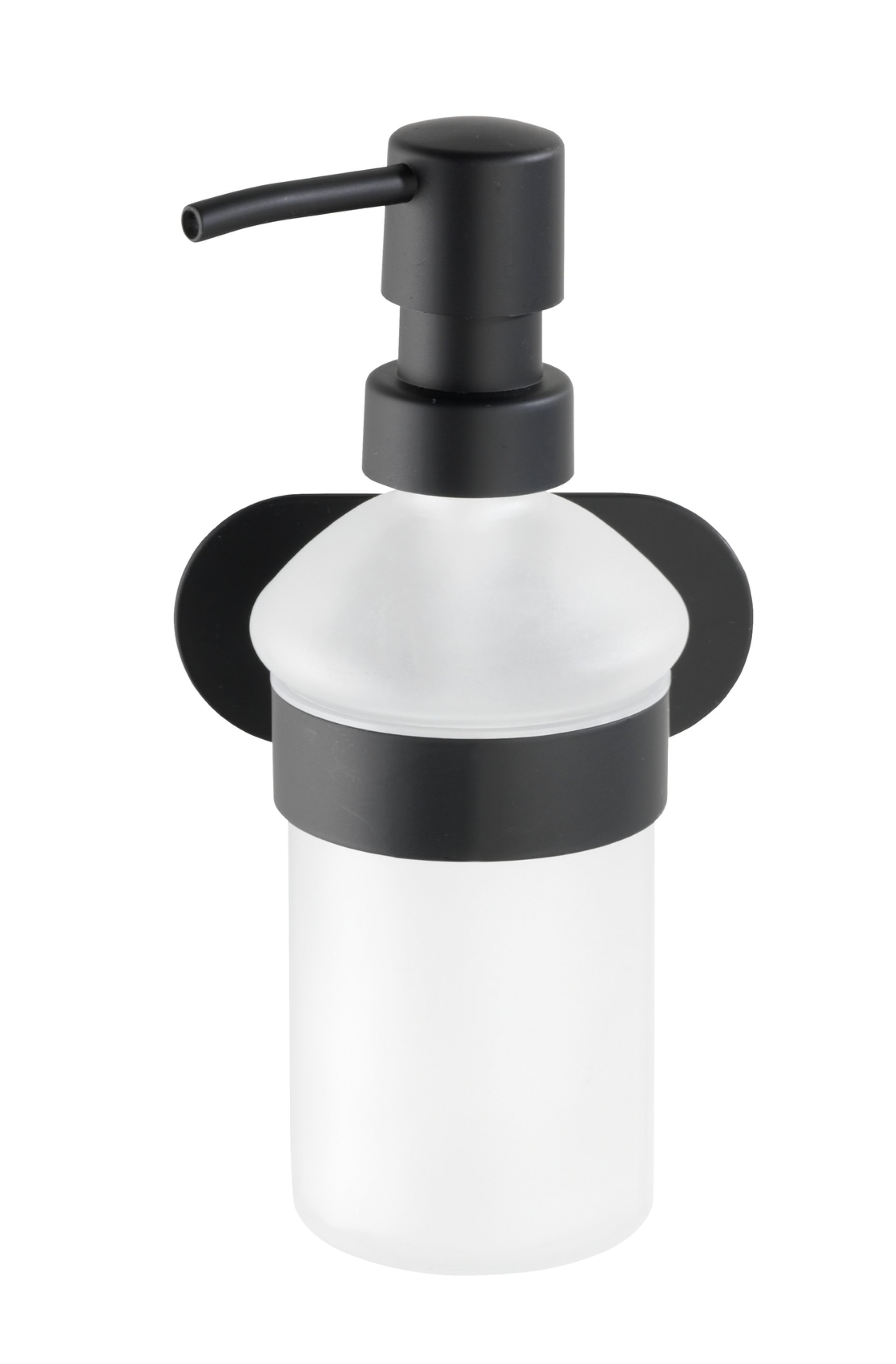 Eleganter Flüssigseifen-Spender aus satiniertem Glas mit schwarzem Pumpkopf