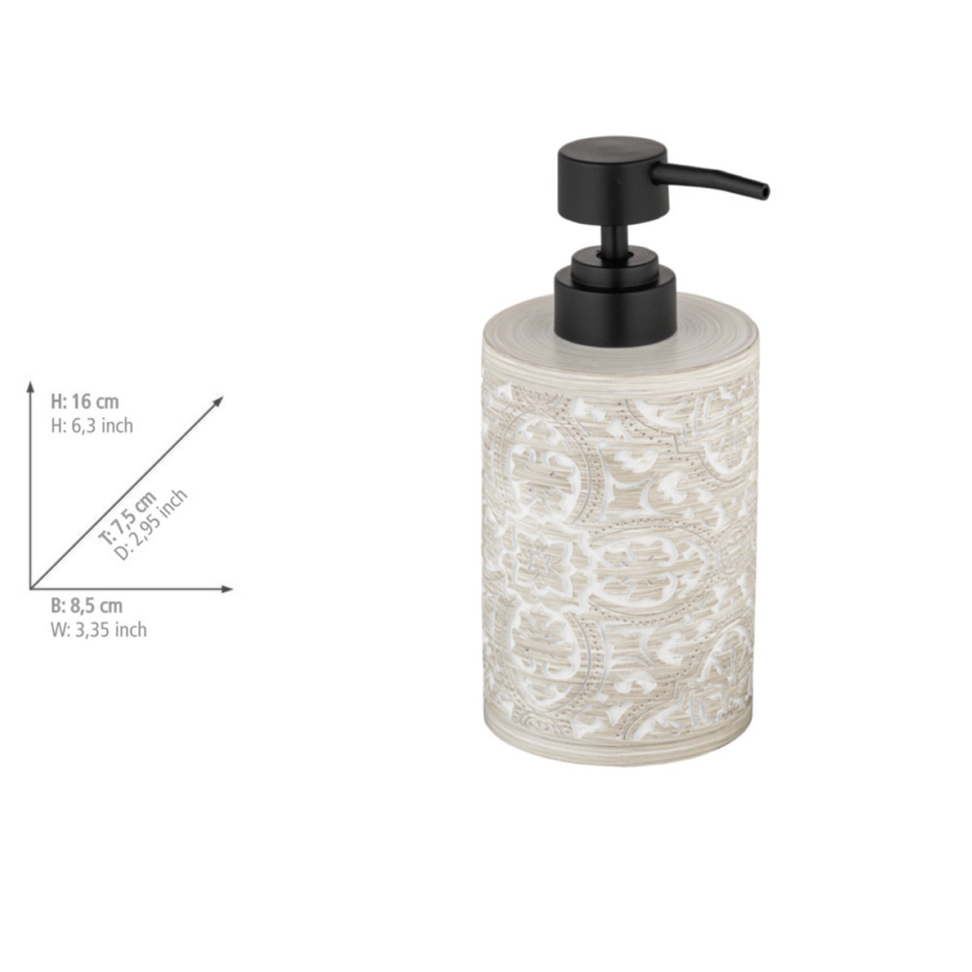 - Der Seifenspender Ortezzano vereint schlichte Eleganz mit Funktionalität und wertet den Bereich rund um Ihr Waschbecken optisch auf. Der Spender ist nachfüllbar und fasst eine Füllmenge von ca. 250 ml.