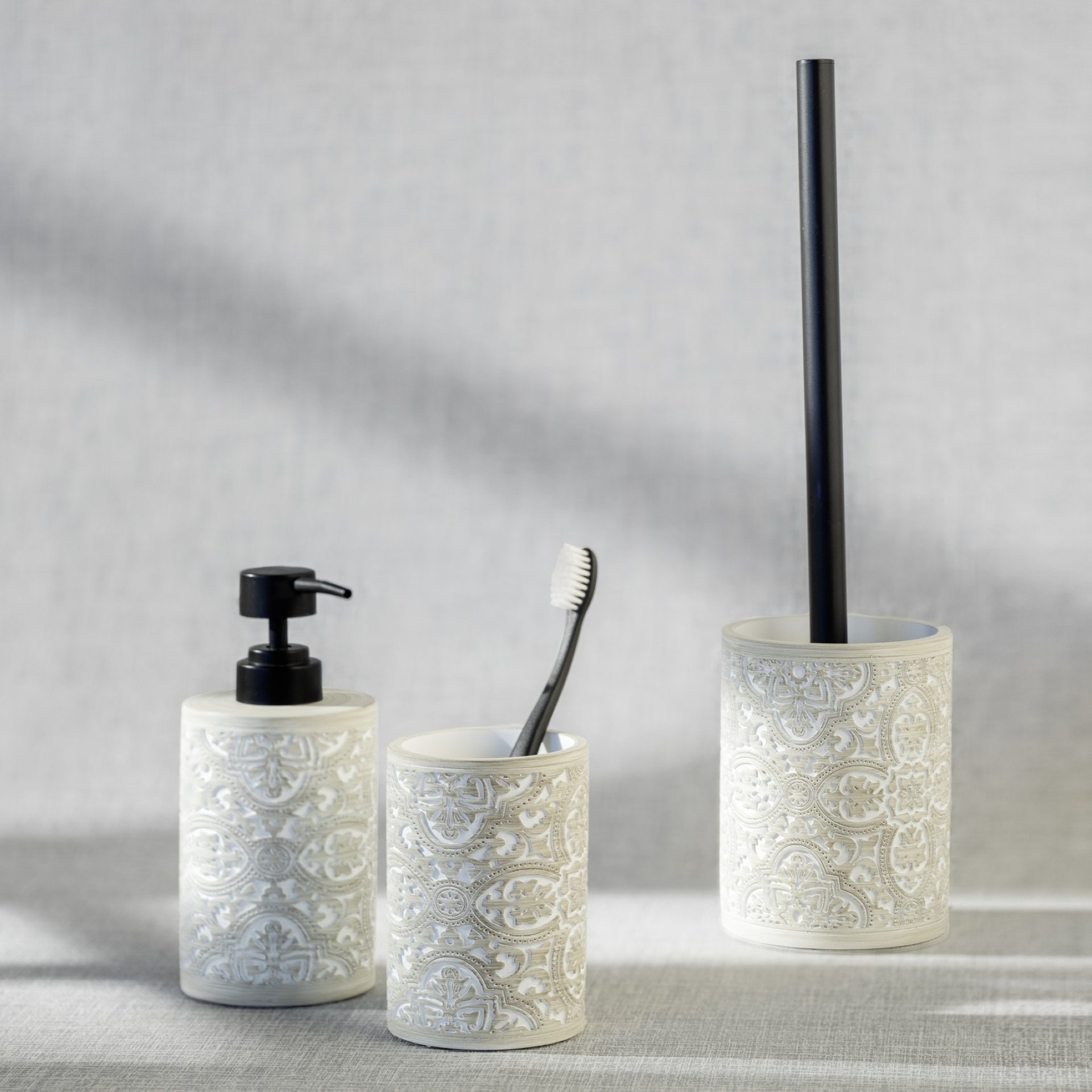 - Das 3-teiliges Bad-Accessoire Set Ortezzano bietet eine ansprechende Kombination aus Ästhetik und Funktionalität und verleiht Ihrem Badezimmer oder Gäste-WC ein elegantes Ambiente.