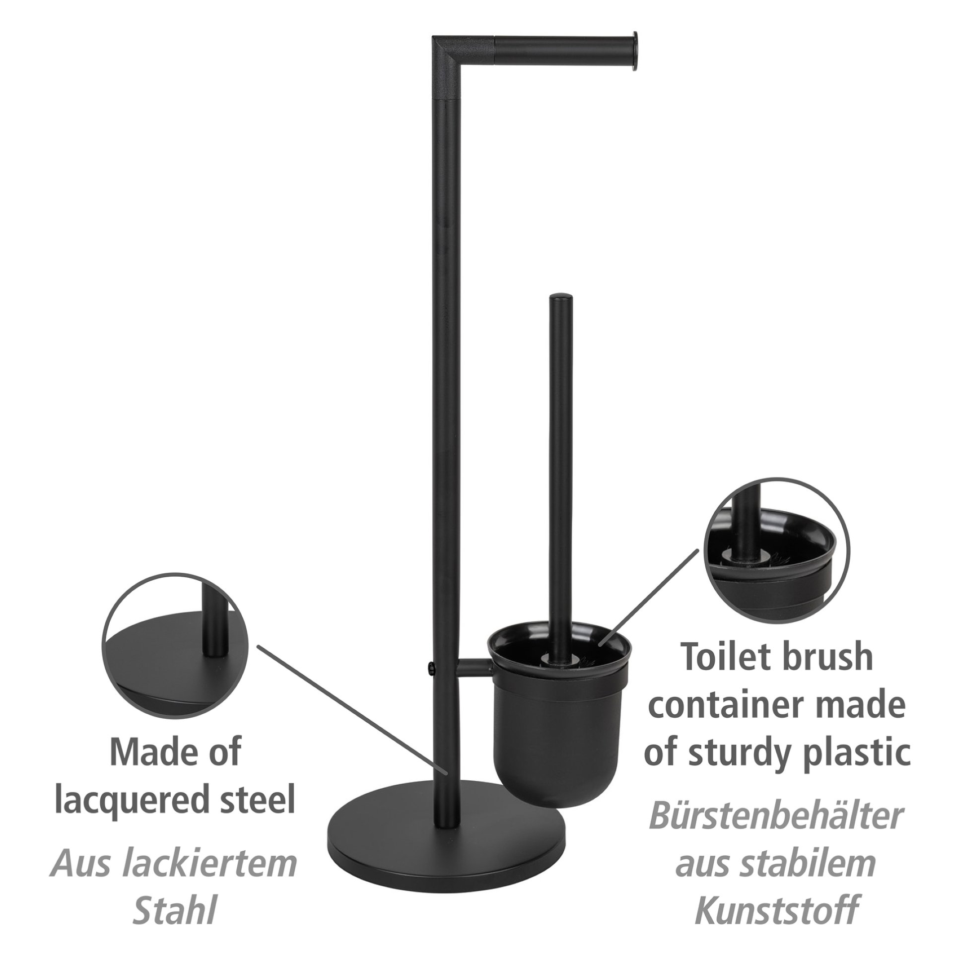 WENKO PARUS WC-Garnitur Schwarz, mit Toilettenpapierhalter, stehend