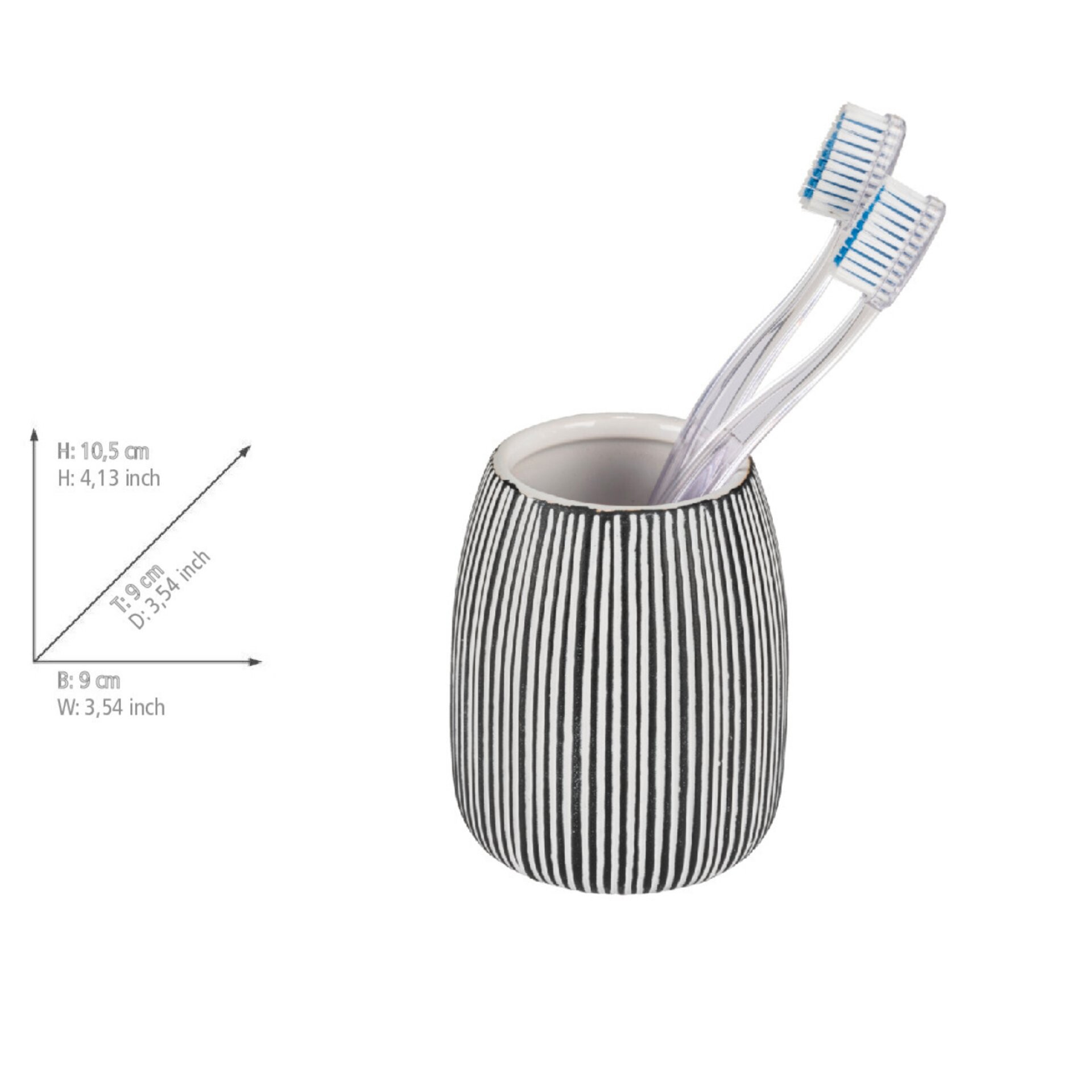 WENKO PASCOLI Accessoire Set Weiß/Schwarz, Zahnputzbecher, Seifenspender, Keramik