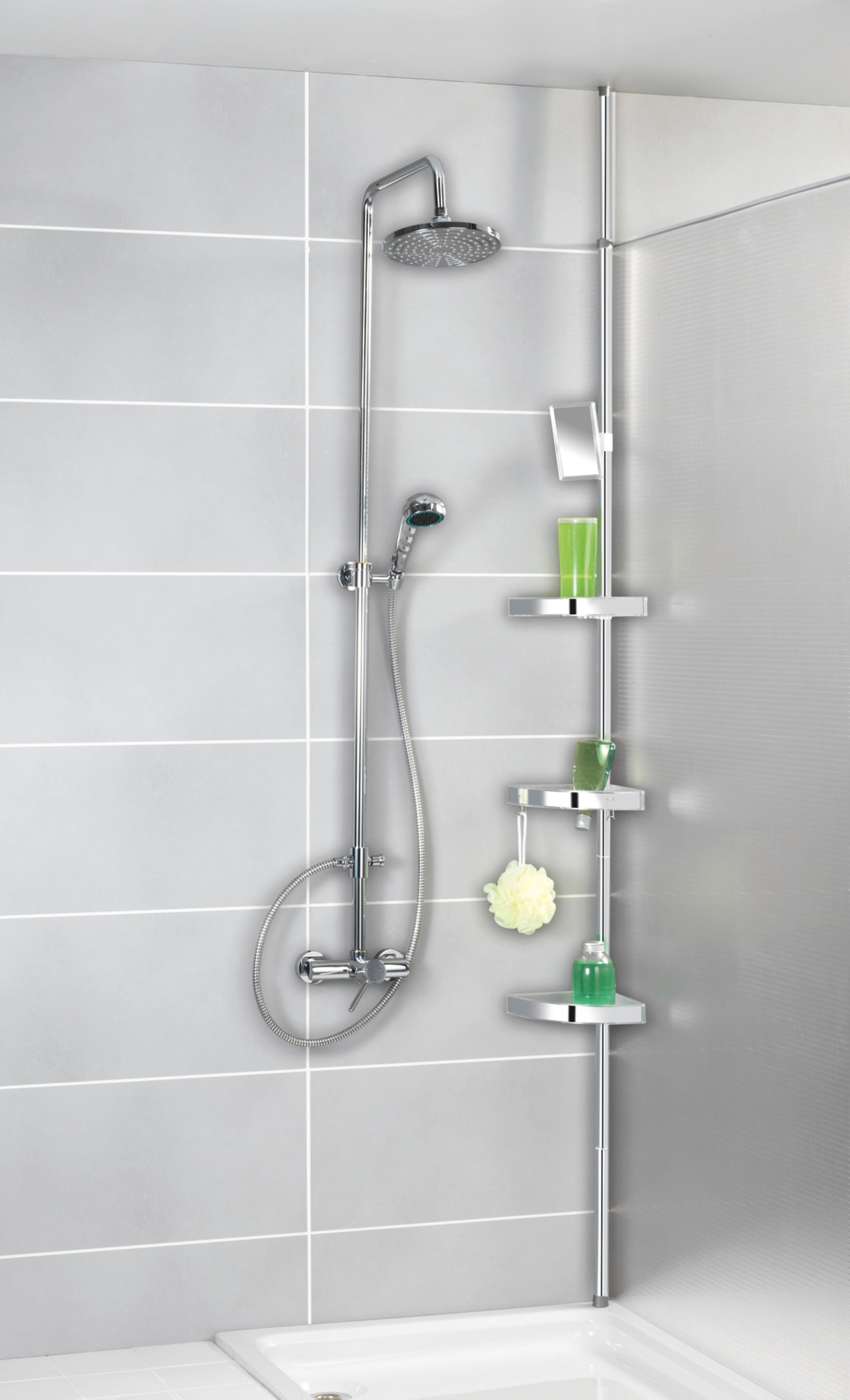 WENKO PREMIUM Dusch Eckablage glänzend, mit 3 Ablagen und Spiegel