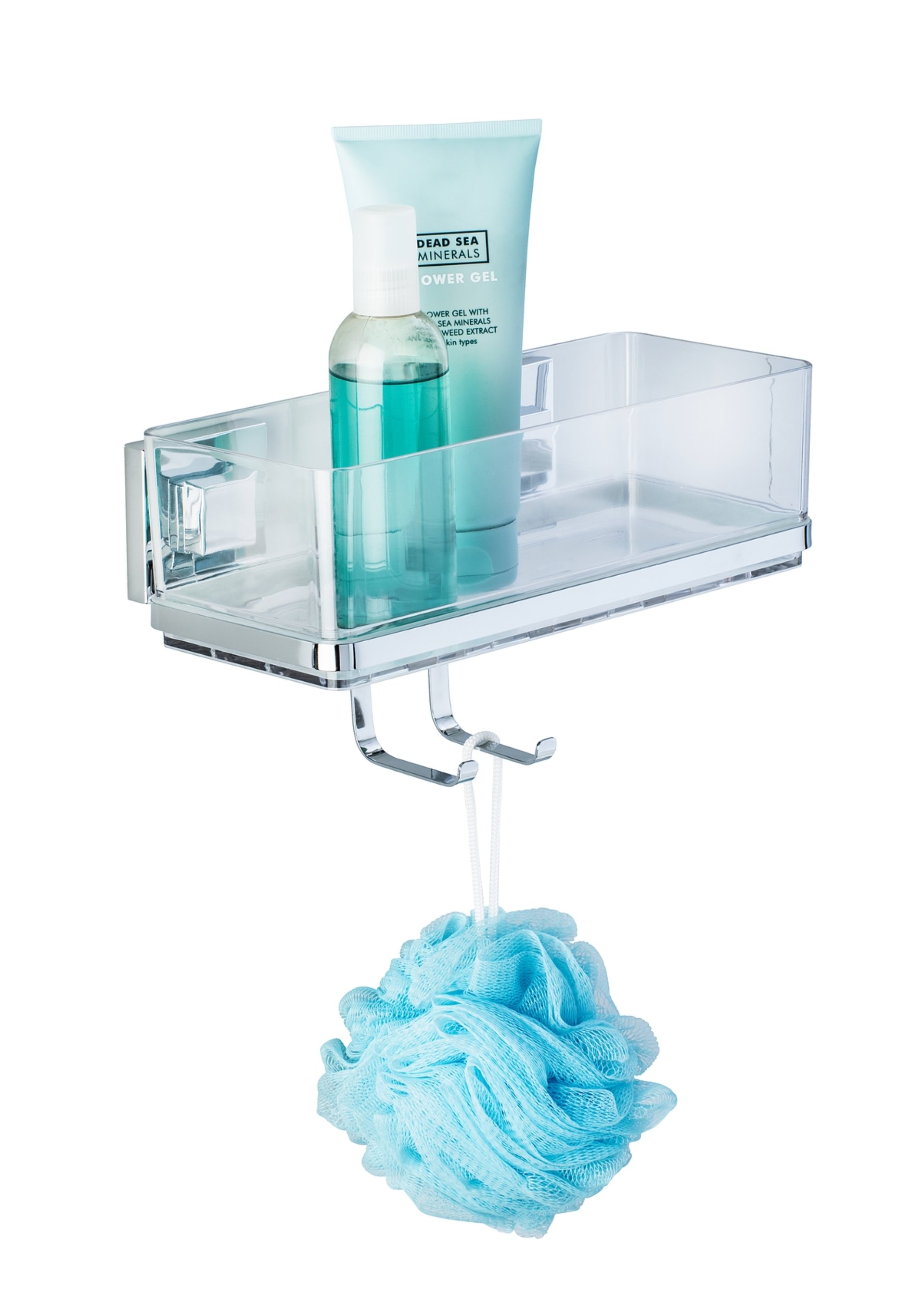 WENKO QUADRO Duschablage mit Haken, Edelstahl, Befestigen ohne bohren, Vacuum-Loc®