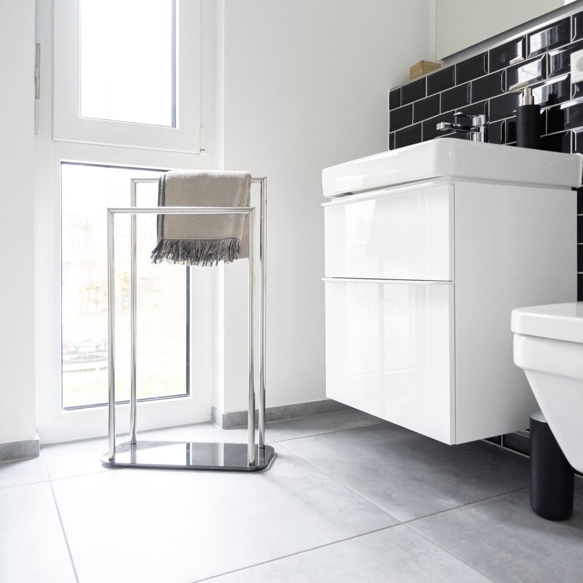 WENKO RAVINA Handtuchhalter Schwarz/Silber, Edelstahl, stehend